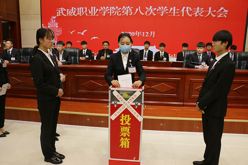 大會(huì)審議通過了《武威職業(yè)學(xué)院第七屆學(xué)生會(huì)工作報(bào)告》《武威職業(yè)學(xué)院學(xué)生會(huì)章程》,肯定了過去一年工作取得的成績(jī),提出今后一年改革發(fā)展的目標(biāo)和任務(wù)。大會(huì)本著“公平、公正、公開”的原則,以無記名投票的形式,通過民主選舉產(chǎn)生了第八屆學(xué)生會(huì)主席團(tuán)。