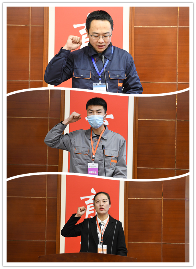 開賽儀式上,裁判員代表董佳輝、參賽學(xué)生代表劉杰和參賽教師代表鄒萬芳分別進(jìn)行了宣誓。