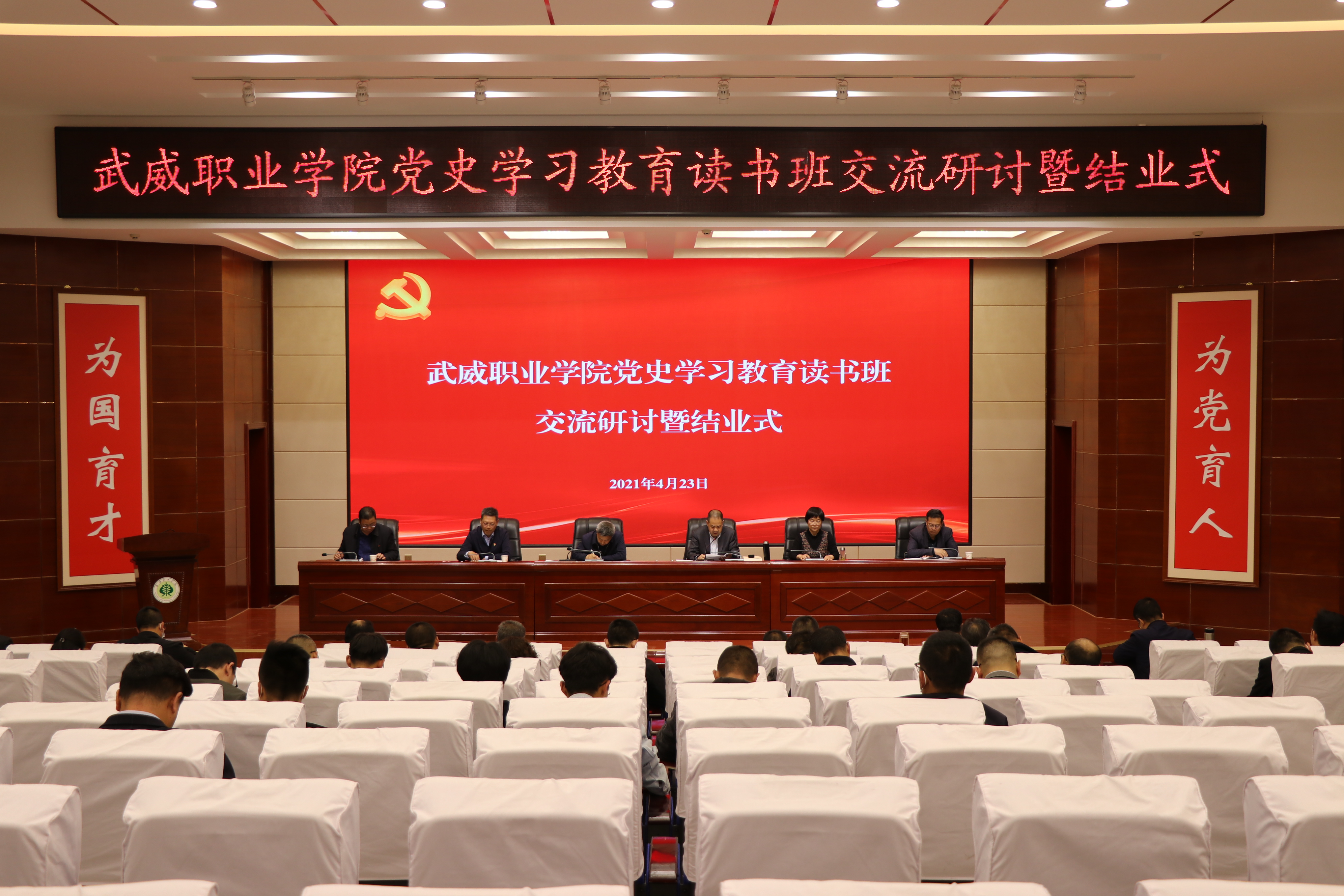 4月23日下午,學(xué)院黨委理論學(xué)習(xí)中心組黨史學(xué)習(xí)教育讀書班交流研討會暨結(jié)業(yè)式在大學(xué)生活動中心菁英廳舉行。學(xué)院領(lǐng)導(dǎo)班子成員、全體中層干部、各基層黨組織書記、專職組織員和支委委員參加會議。黨委書記、院長趙明主持結(jié)業(yè)式并講話。