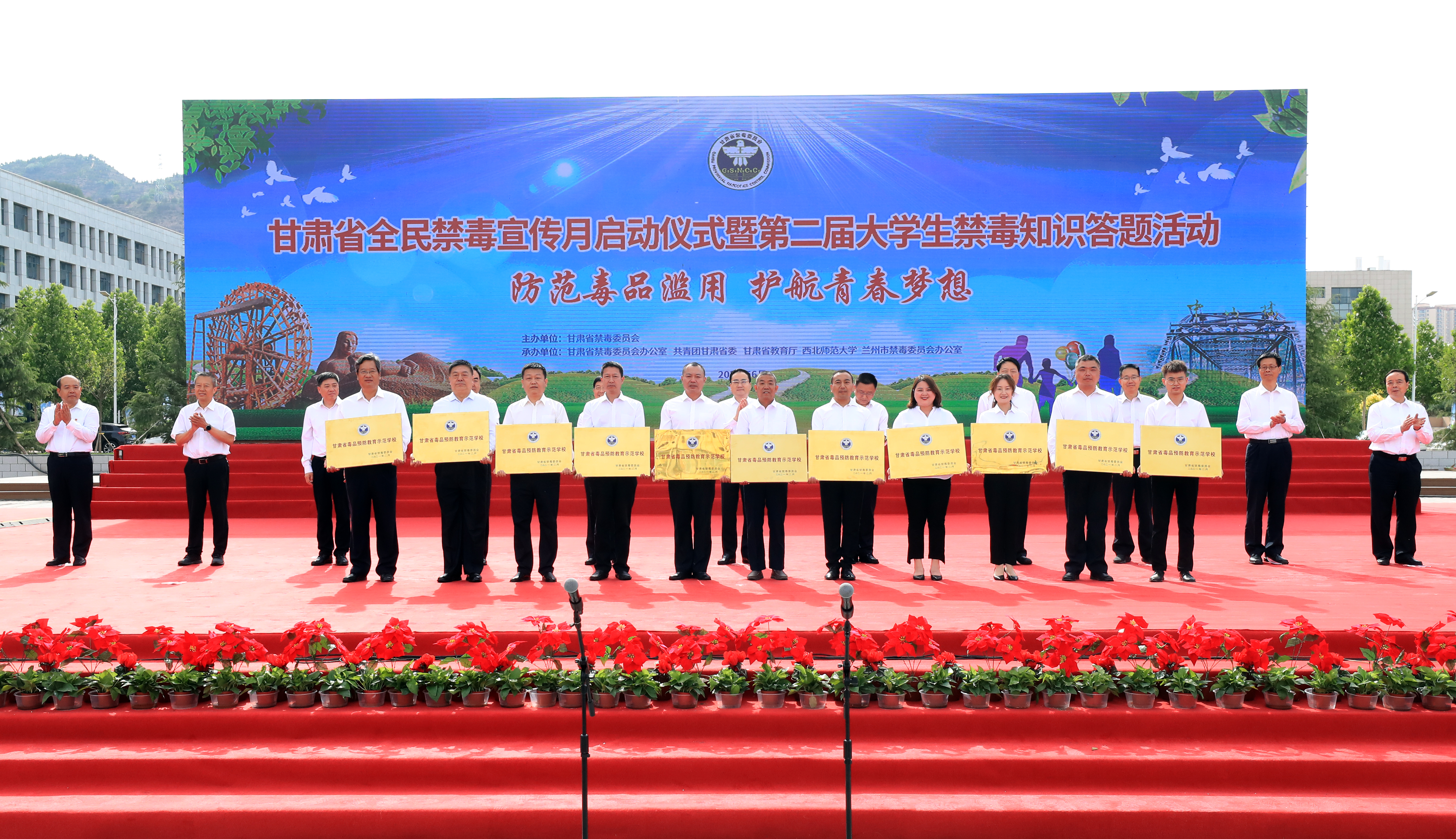 正值全院上下深入推進黨史學習教育之時,在6月8日上午舉辦的全省“防范毒品濫用·護航青春夢想”為主題的甘肅省全民禁毒宣傳月啟動儀式暨第二屆大學生禁毒知識答題活動啟動儀式上,學院被命名為“甘肅省毒品預防教育示范學?!?。
