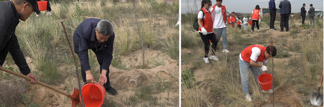 揭牌儀式后,師生志愿者在學(xué)院認(rèn)建的800畝公益林進(jìn)行了平整樹(shù)坑、澆水、清理雜物等勞動(dòng)。