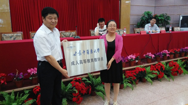 頒發(fā)“甘肅中醫(yī)藥大學(xué)成人高等教育教學(xué)點(diǎn)”牌匾