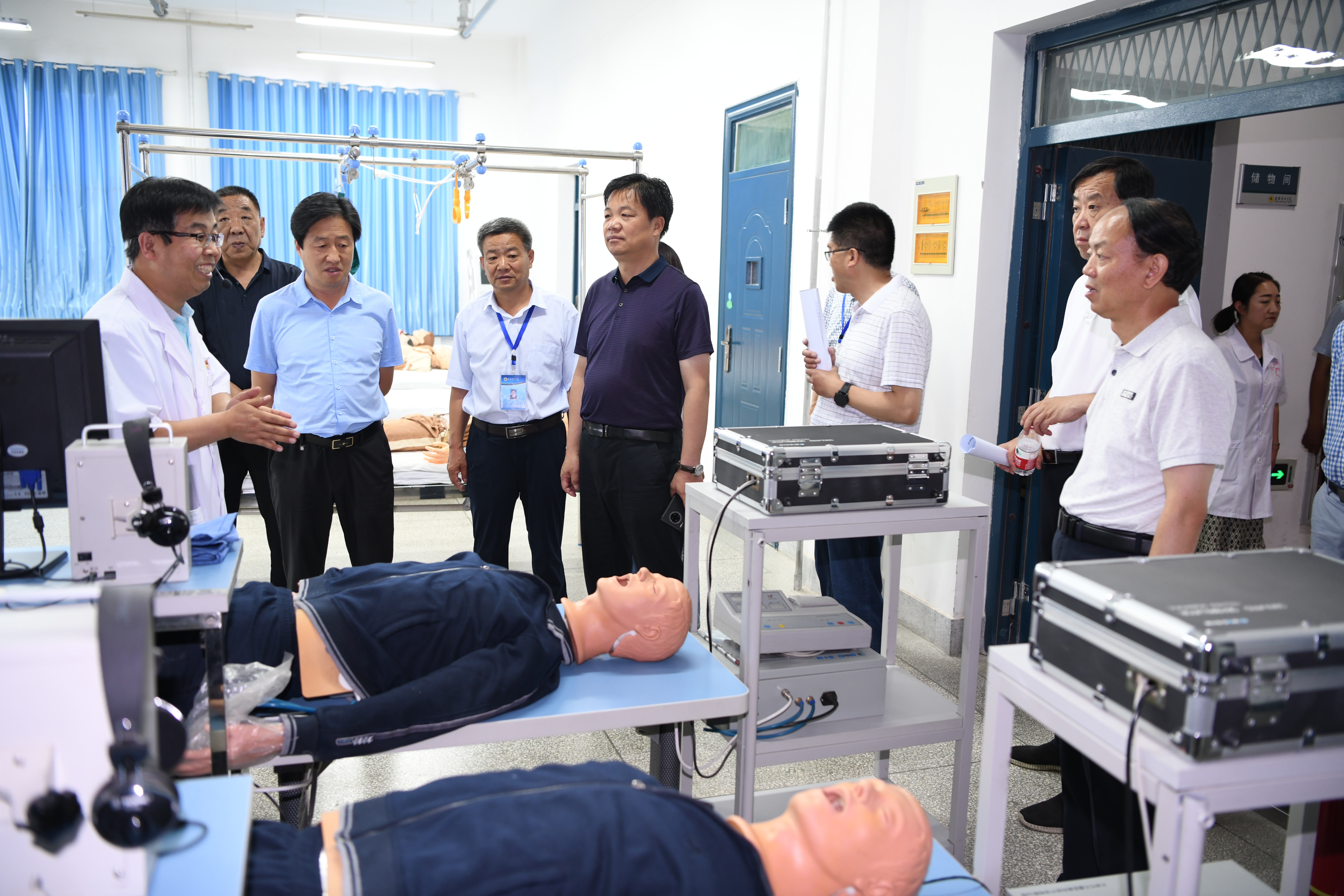 平?jīng)鍪腥舜蟪N瘯W(xué)習(xí)考察組一行先后深入學(xué)院紅色文化藝術(shù)館、能源類專業(yè)實驗實訓(xùn)室、生命科技館、護理示教室、機械制造實訓(xùn)車間、汽車修理實訓(xùn)車間等地進行調(diào)研考察。趙明向?qū)W習(xí)考察組一行介紹了學(xué)院建設(shè)發(fā)展歷程、師資隊伍建設(shè)、招生就業(yè)、科研服務(wù)、校企合作、與中國科學(xué)院合作辦學(xué)——中科低碳新能源技術(shù)學(xué)院建設(shè)和“雙高計劃”院校建設(shè)等情況。