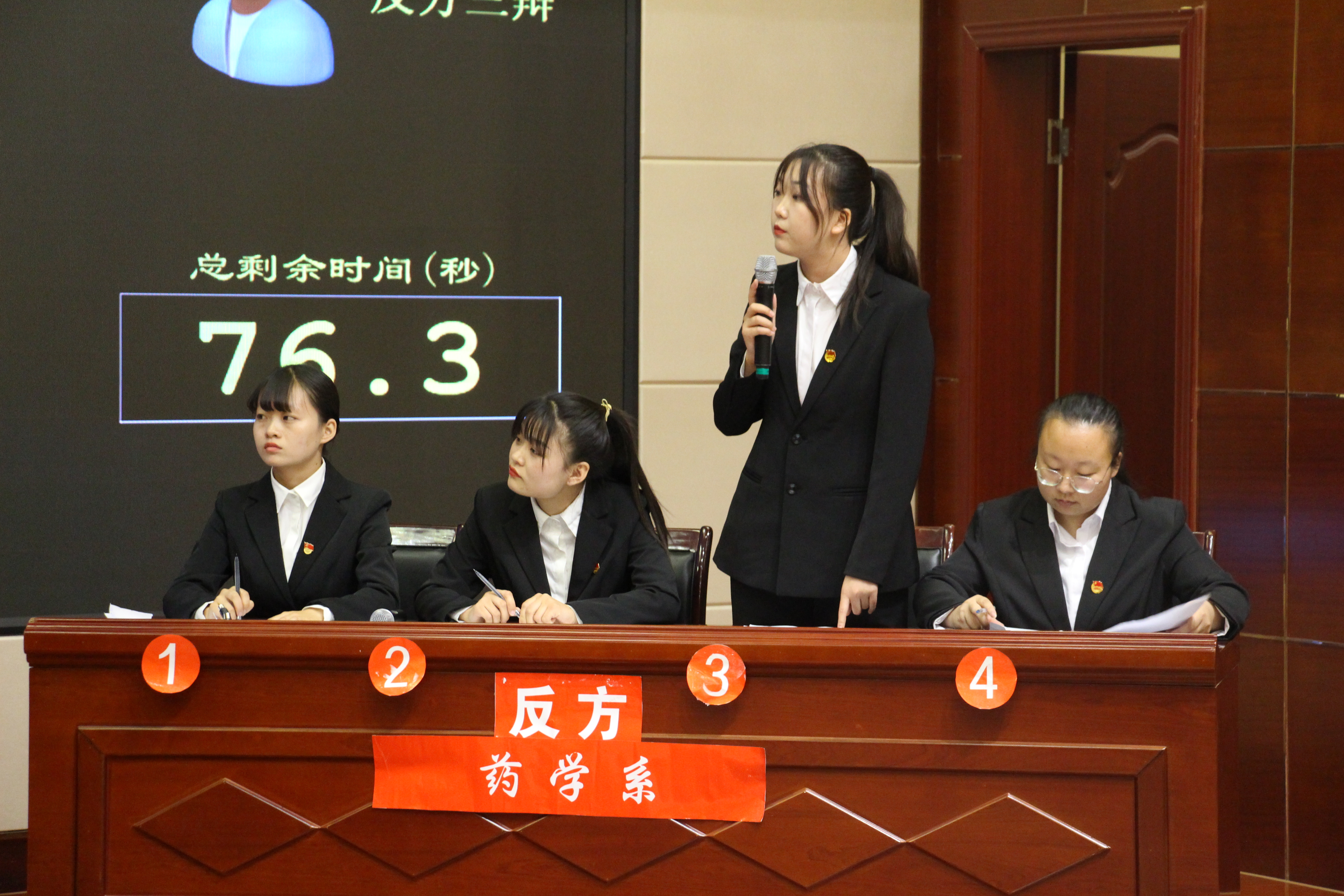 經(jīng)過(guò)11場(chǎng)次的比賽,電子信息工程系代表隊(duì)和藥學(xué)系代表隊(duì)進(jìn)入最后決賽。決賽現(xiàn)場(chǎng),正反雙方針對(duì)高素質(zhì)技術(shù)技能人才以“仁”還是以“智”為先拉開(kāi)激烈交戰(zhàn)。雙方選手在立論、駁立論、攻辯等環(huán)節(jié)中思路清晰,引經(jīng)據(jù)典,高潮迭起。自由辯論環(huán)節(jié),雙方唇槍舌戰(zhàn),針?shù)h相對(duì),步步為營(yíng),愈辯愈烈,精彩紛呈,觀眾也積極互動(dòng),現(xiàn)場(chǎng)氣氛十分活躍。