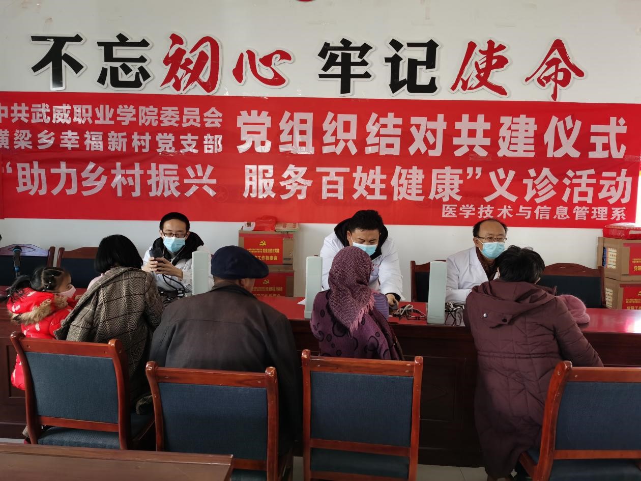 為深入學(xué)習(xí)宣傳貫徹黨的十九屆六中全會(huì)精神及武威市第五次黨代會(huì)精神,緊緊圍繞鄉(xiāng)村振興戰(zhàn)略全力落實(shí)健康扶貧等惠民政策,12月10日,醫(yī)學(xué)技術(shù)與信息管理系黨總支組織黨員和教師到古浪縣橫梁鄉(xiāng)幸福新村、康寧新村開展“助力鄉(xiāng)村振興,服務(wù)百姓健康”義診活動(dòng)。