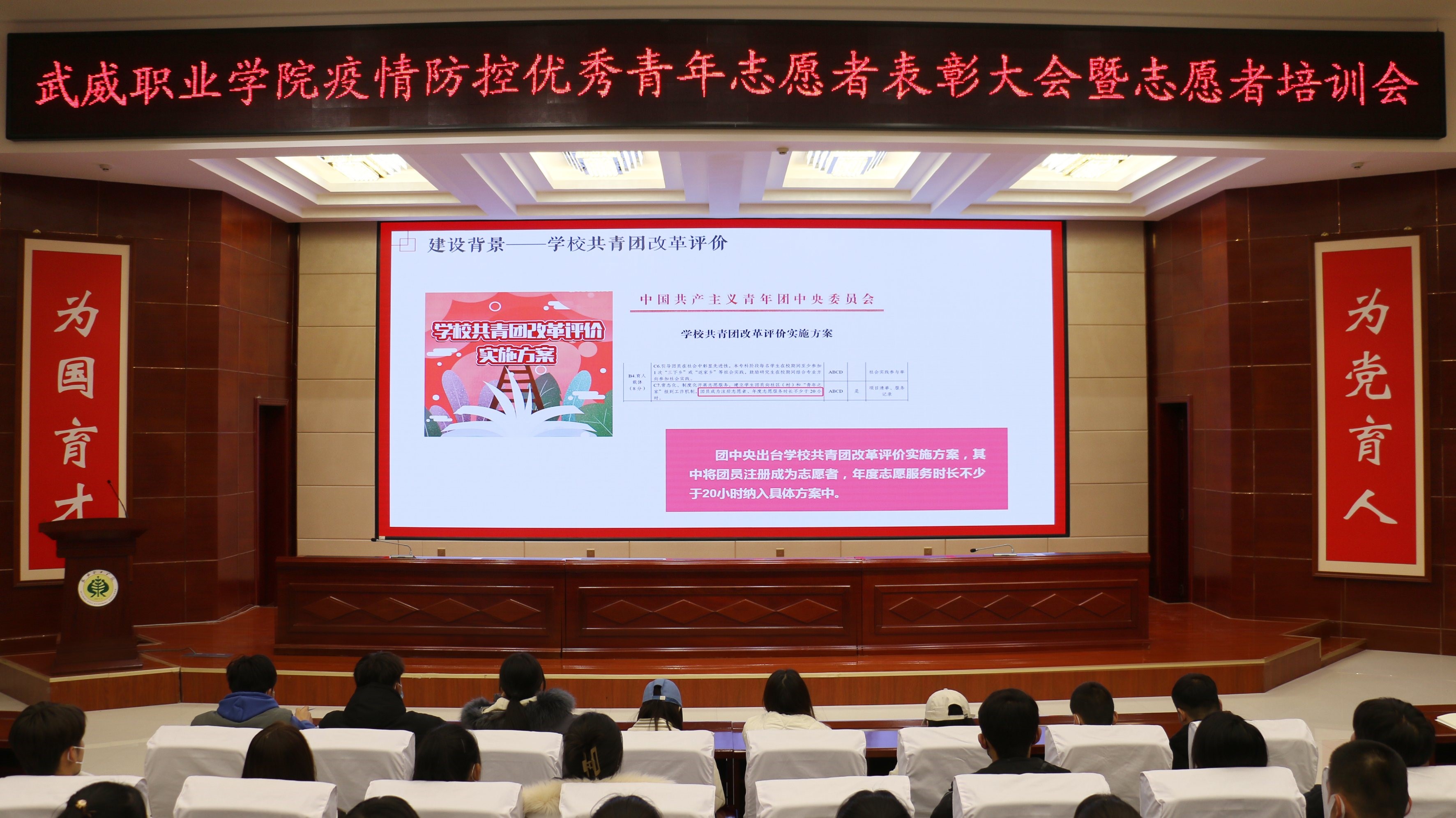 在表彰大會上,宣讀了《武威職業(yè)學(xué)院關(guān)于對疫情防控期間優(yōu)秀青年志愿者進(jìn)行通報表揚的決定》,為疫情防控期間優(yōu)秀青年志愿者代表頒發(fā)了榮譽證書。