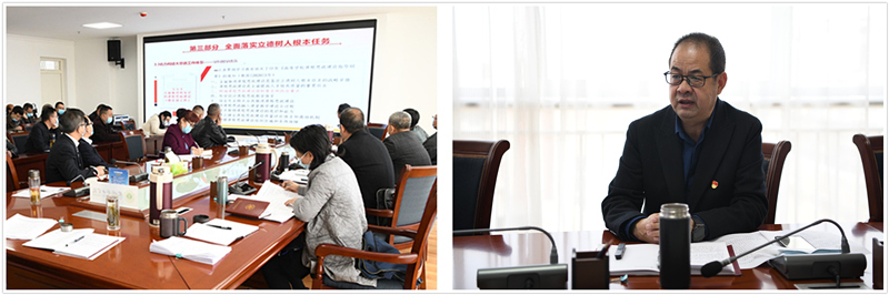 會議傳達(dá)學(xué)習(xí)了習(xí)近平總書記在學(xué)校思政課教師座談會上發(fā)表的重要講話《思政課是落實(shí)立德樹人根本任務(wù)的關(guān)鍵課程》。黨委副書記、省級思政課名師工作室負(fù)責(zé)人翟存祥圍繞學(xué)習(xí)貫徹習(xí)近平總書記講話精神作了專題輔導(dǎo)報(bào)告。