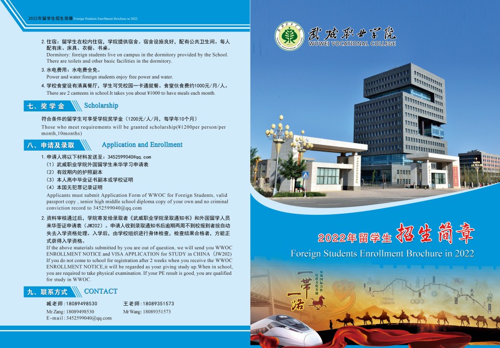 武威職業(yè)學(xué)院2022年留學(xué)生招生簡(jiǎn)章