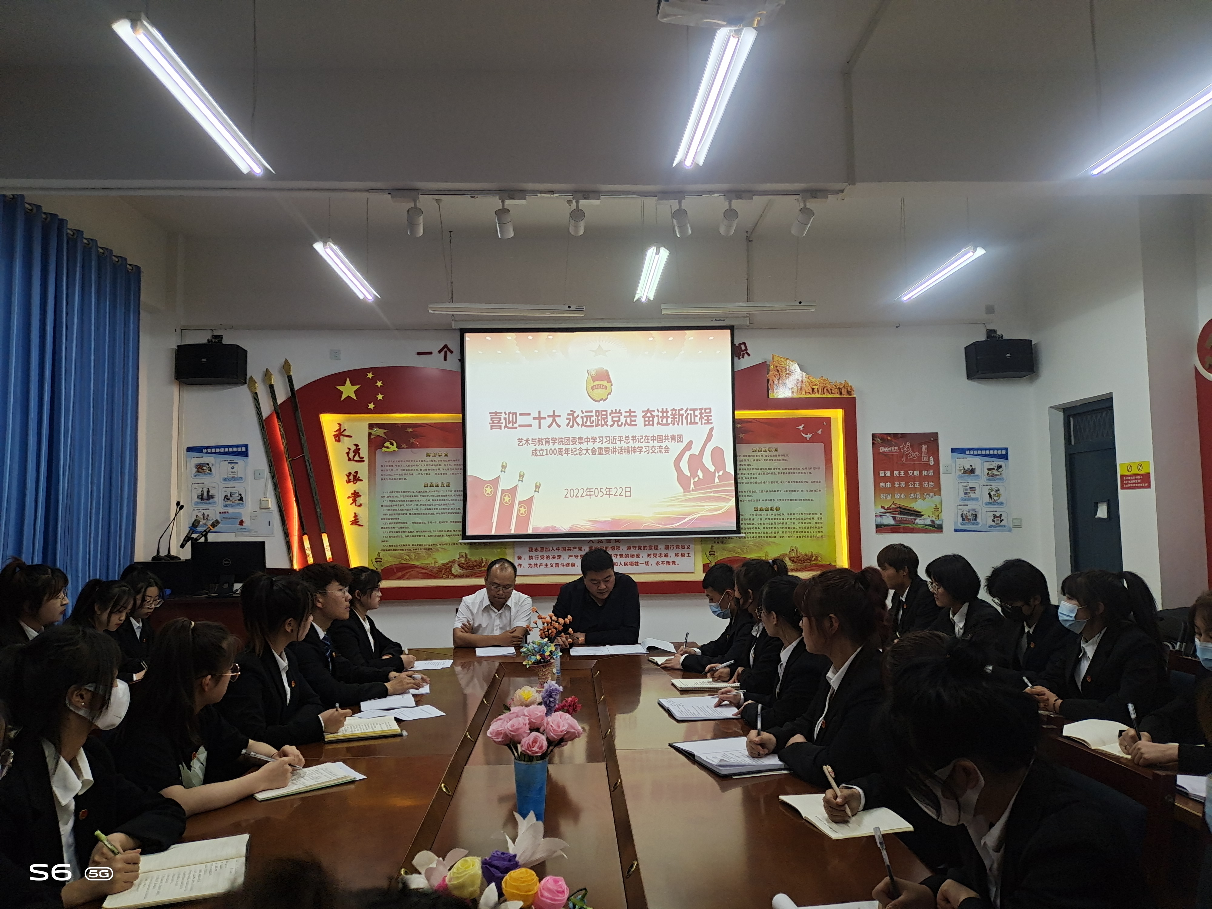 2022年5月22日晚,藝術(shù)與教育學(xué)院團(tuán)委以“喜迎二十大,奮進(jìn)新征程,永遠(yuǎn)跟黨走”為主題,開展習(xí)近平總書記在慶祝中國共產(chǎn)主義青年團(tuán)成立100周年大會(huì)上的重要講話精神學(xué)習(xí)研討交流會(huì),參會(huì)人員由藝術(shù)與教育學(xué)院副院長李欣,團(tuán)委書記唐鑫基,20、21級各班團(tuán)支部書記及優(yōu)秀團(tuán)員代表、預(yù)備黨員、入黨積極分子和入團(tuán)積極分子代表組成。