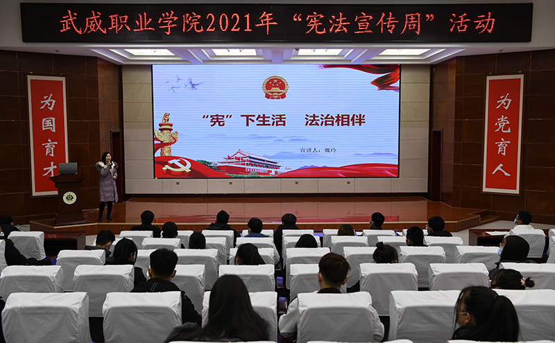 今年12月4日,是我國第八個(gè)國家憲法日。學(xué)生發(fā)展中心菁英廳內(nèi),馬克思主義學(xué)院法學(xué)專業(yè)教師魏玲進(jìn)行了主題為“憲下生活法治相伴”的講座,學(xué)生代表110余人聆聽講座。