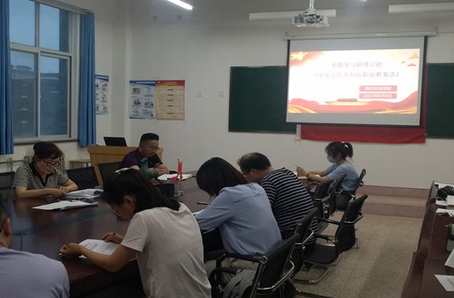 6月6日晚,現(xiàn)代農(nóng)業(yè)學院(鄉(xiāng)村振興學院)組織召開專題會議,學習新修訂的《中華人民共和國職業(yè)教育法》(以下簡稱《職業(yè)教育法》)。會議由學院黨總支書記晏素珍主持,院長金玉龍及全體教師參加了此次學習。