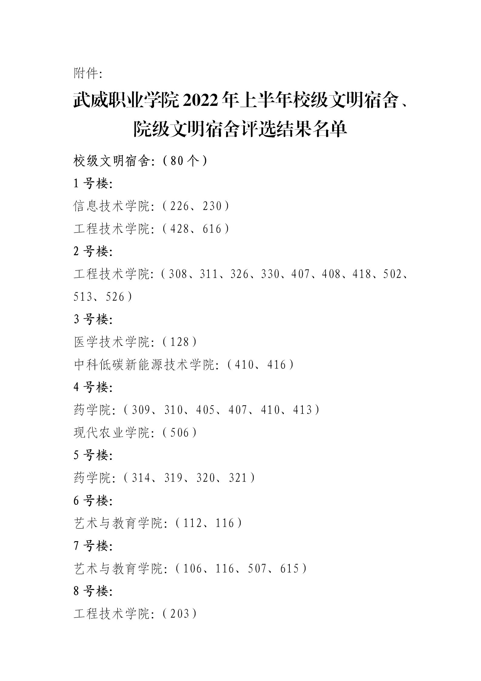 關(guān)于武威職業(yè)學(xué)院2022年上半年校級(jí)文明宿舍、院級(jí)文明宿舍評(píng)選結(jié)果的公示