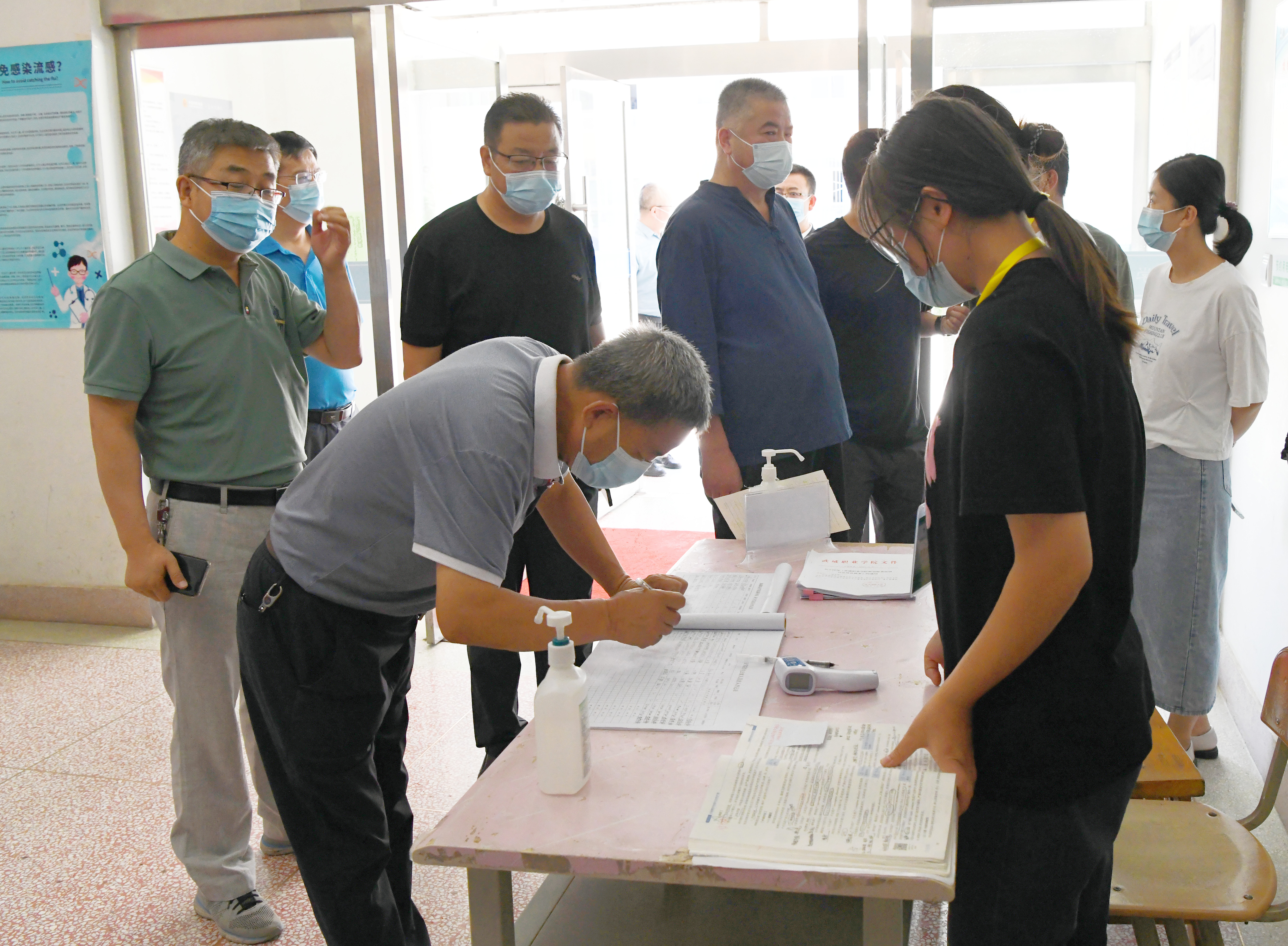 720日上午,學(xué)校黨委書(shū)記校長(zhǎng)趙明,副校長(zhǎng)王永緒,紀(jì)委書(shū)記、監(jiān)察專(zhuān)員陳曉煜,副校長(zhǎng)張開(kāi)禮、王守云帶領(lǐng)學(xué)校辦公室、宣傳統(tǒng)戰(zhàn)部、紀(jì)檢監(jiān)察綜合室、學(xué)生工作處、后勤處、安全保衛(wèi)處和相關(guān)二級(jí)學(xué)院負(fù)責(zé)人深入學(xué)校東大門(mén)、1號(hào)餐廳、超市、學(xué)生公寓、核酸檢測(cè)點(diǎn)等地,實(shí)地檢查指導(dǎo)學(xué)校疫情防控工作。
