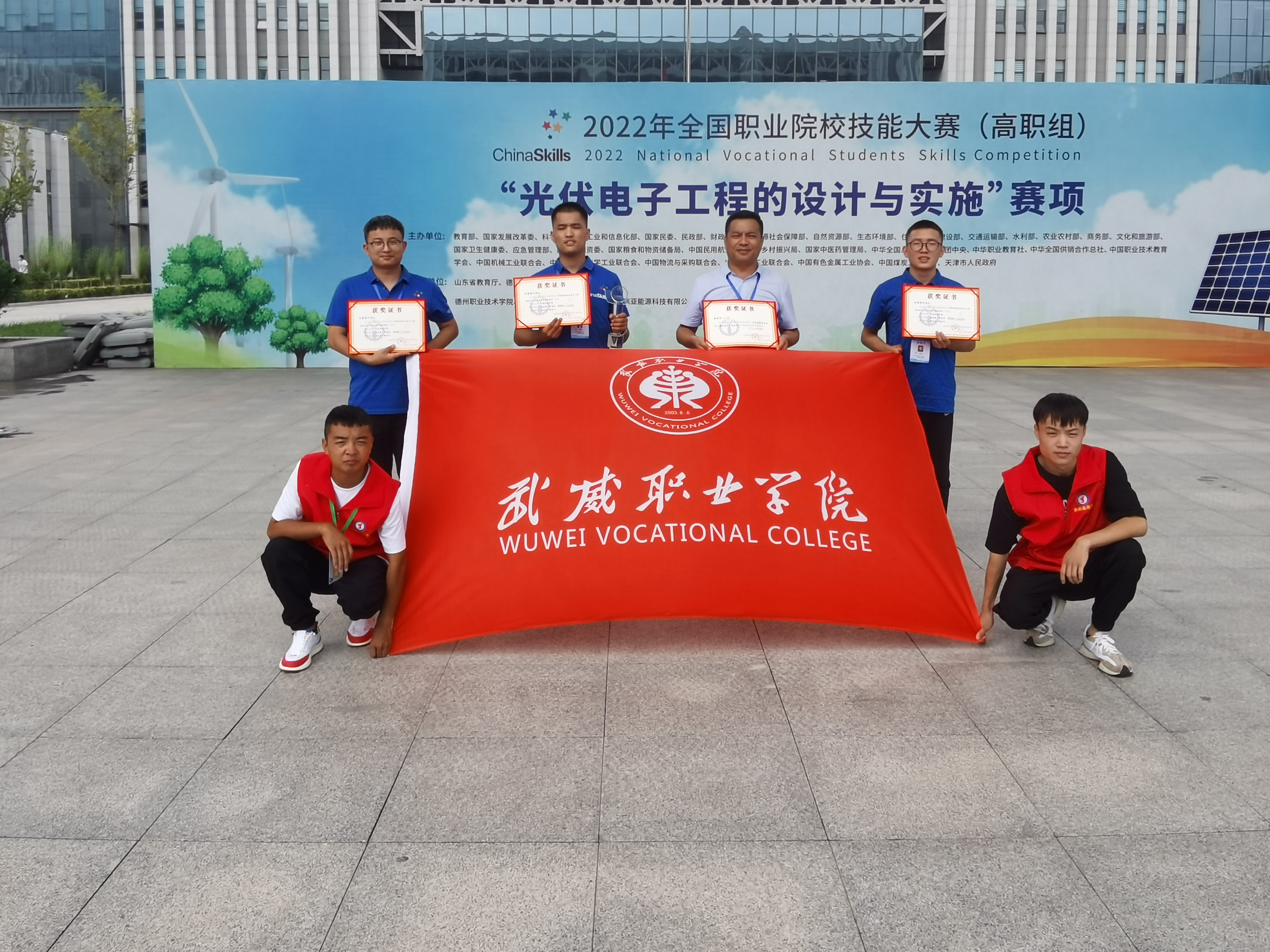 8月22日至23日,由教育部、工業(yè)和信息化部、財政部、人力資源和社會保障部、住房和城鄉(xiāng)建設(shè)部、交通運輸部、農(nóng)業(yè)部等部委主辦的2022年全國職業(yè)院校技能大賽高職組“光伏電子工程的設(shè)計與實施”賽項在山東德州職業(yè)技術(shù)學(xué)院舉辦,來自全國30個省(市)、自治區(qū)的55支代表隊參加了比賽。武威職業(yè)學(xué)院中科低碳新能源技術(shù)學(xué)院高東興、富金強、趙寶林三名同學(xué)代表甘肅省參加本次大賽,最終榮獲國賽一等獎,完全實現(xiàn)了賽前確定的“穩(wěn)二爭一”的目標任務(wù)。這是學(xué)校參加全國職業(yè)院校技能大賽以來首次獲得國賽一等獎,實現(xiàn)了學(xué)校該賽項國獎“零”的突破,開啟了學(xué)校專業(yè)建設(shè)高質(zhì)量發(fā)展新征程。本次優(yōu)異成績的取得充分展現(xiàn)了學(xué)?!皪徴n賽證”相融通的綜合育人效果,充分體現(xiàn)了學(xué)校深化“三教改革”推動高質(zhì)量發(fā)展的成效,充分彰顯了學(xué)校實施“雙高計劃”“技能甘肅”“提質(zhì)培優(yōu)”等重大項目建設(shè)推進高水平發(fā)展的成效,本次競賽成績是對學(xué)校新能源類專業(yè)建設(shè)的肯定,也是武威乃至全省職業(yè)教育發(fā)展的試金石和榮光。