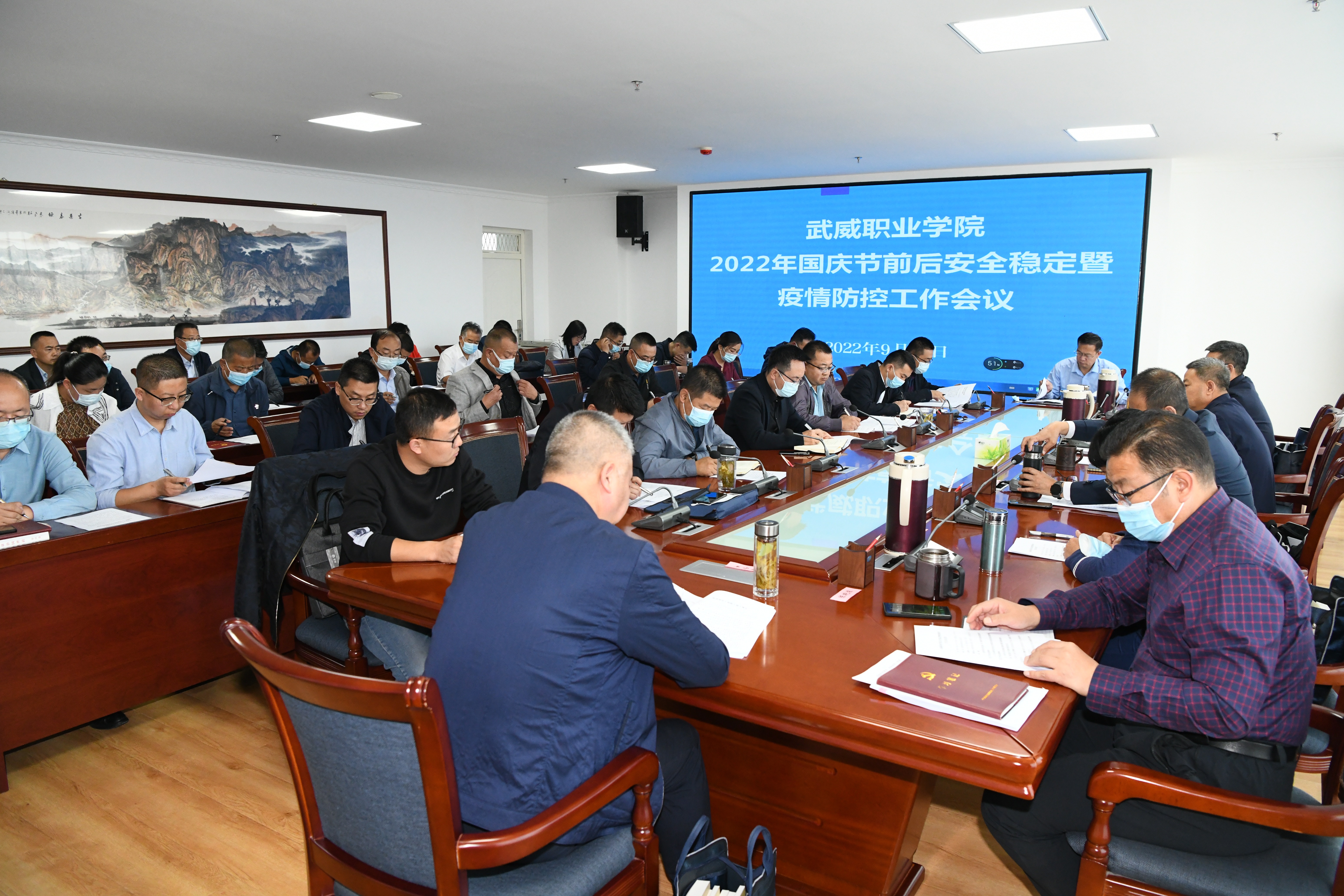 趙明強(qiáng)調(diào),安全穩(wěn)定重于泰山,疫情防控不容松懈。各部門、二級學(xué)院要深刻認(rèn)識當(dāng)前抓好校園安全穩(wěn)定和疫情防控工作的重大意義和極端重要性,樹牢風(fēng)險(xiǎn)意識,強(qiáng)化極限思維,以強(qiáng)烈的政治擔(dān)當(dāng)、使命擔(dān)當(dāng)、責(zé)任擔(dān)當(dāng),把防風(fēng)險(xiǎn)、保安全、護(hù)穩(wěn)定各項(xiàng)措施落到實(shí)處,以實(shí)干實(shí)績迎接黨的二十大勝利召開。