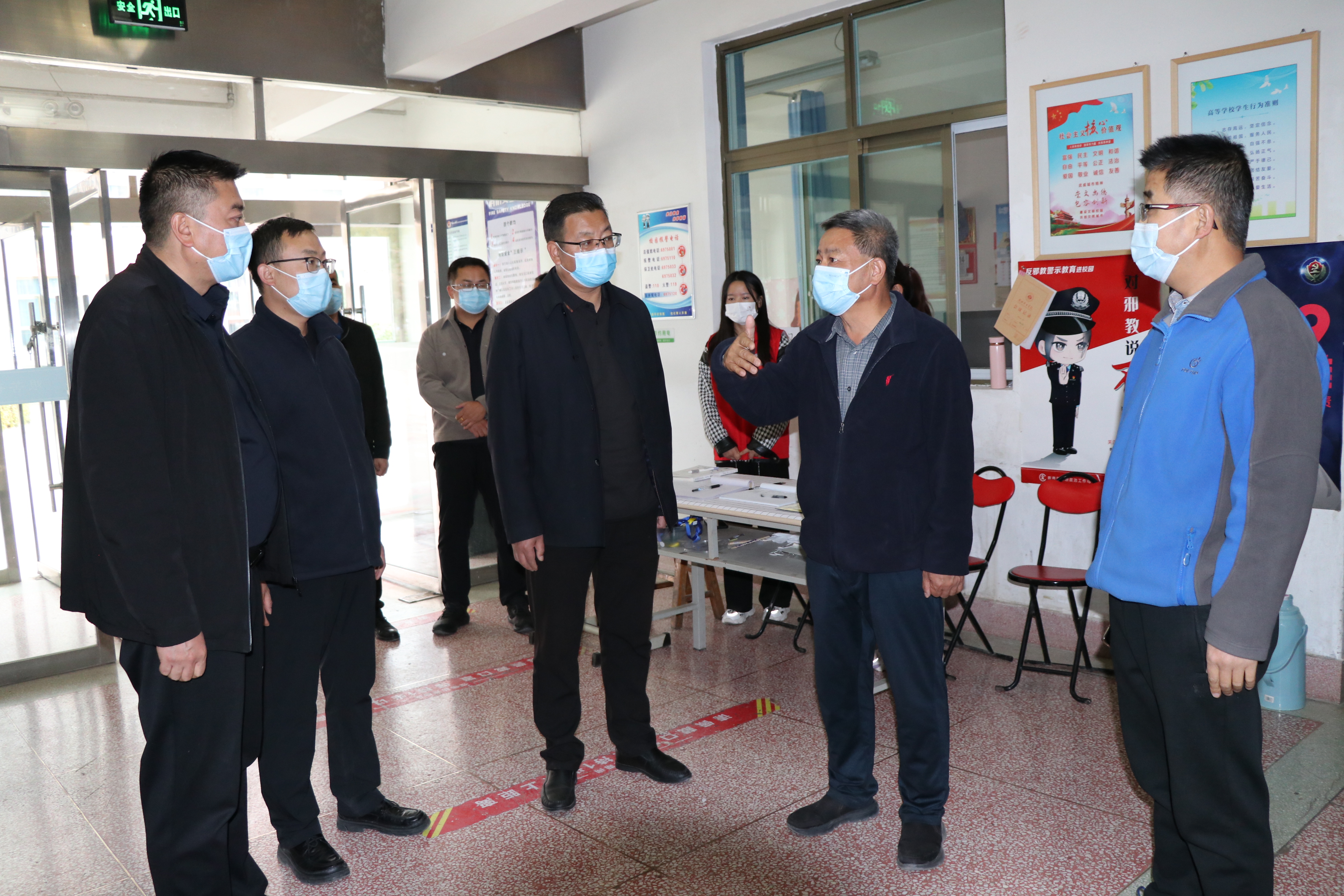 為進(jìn)一步加強(qiáng)校園疫情防控和安全穩(wěn)定工作,排查風(fēng)險(xiǎn)隱患,筑牢安全防線,10月14日,黨委書(shū)記、校長(zhǎng)趙明,黨委委員,紀(jì)委書(shū)記、監(jiān)察專員陳曉煜一行對(duì)校園內(nèi)重點(diǎn)場(chǎng)所進(jìn)行督導(dǎo)檢查。學(xué)生工作處、安全保衛(wèi)處等相關(guān)部門(mén)負(fù)責(zé)人一同檢查。