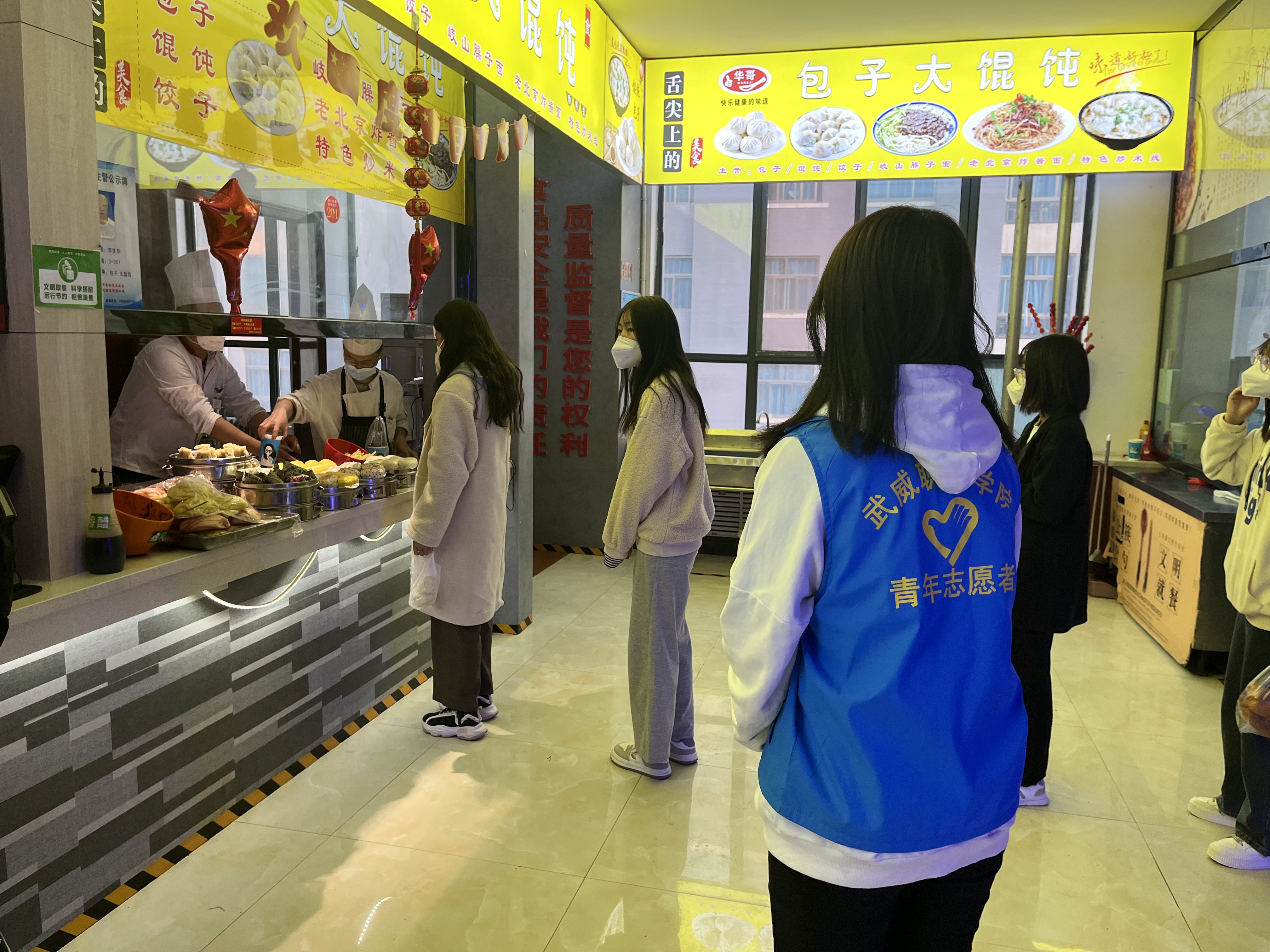 “您好,請(qǐng)測(cè)量體溫、掃場(chǎng)所碼?!薄罢?qǐng)佩戴好口罩,有序排隊(duì)……”校學(xué)生會(huì)的陶玲在學(xué)校食堂門口值班時(shí)不停地提醒著進(jìn)出打飯的同學(xué)們,這也是她參加校園疫情防控以來每天講得最多的話。自10月13日涼州區(qū)實(shí)施臨時(shí)管控以來,學(xué)校各學(xué)生組織聞令而動(dòng),身穿“藍(lán)馬甲”積極投身校園疫情防控一線,用奉獻(xiàn)溫暖了這個(gè)秋天。