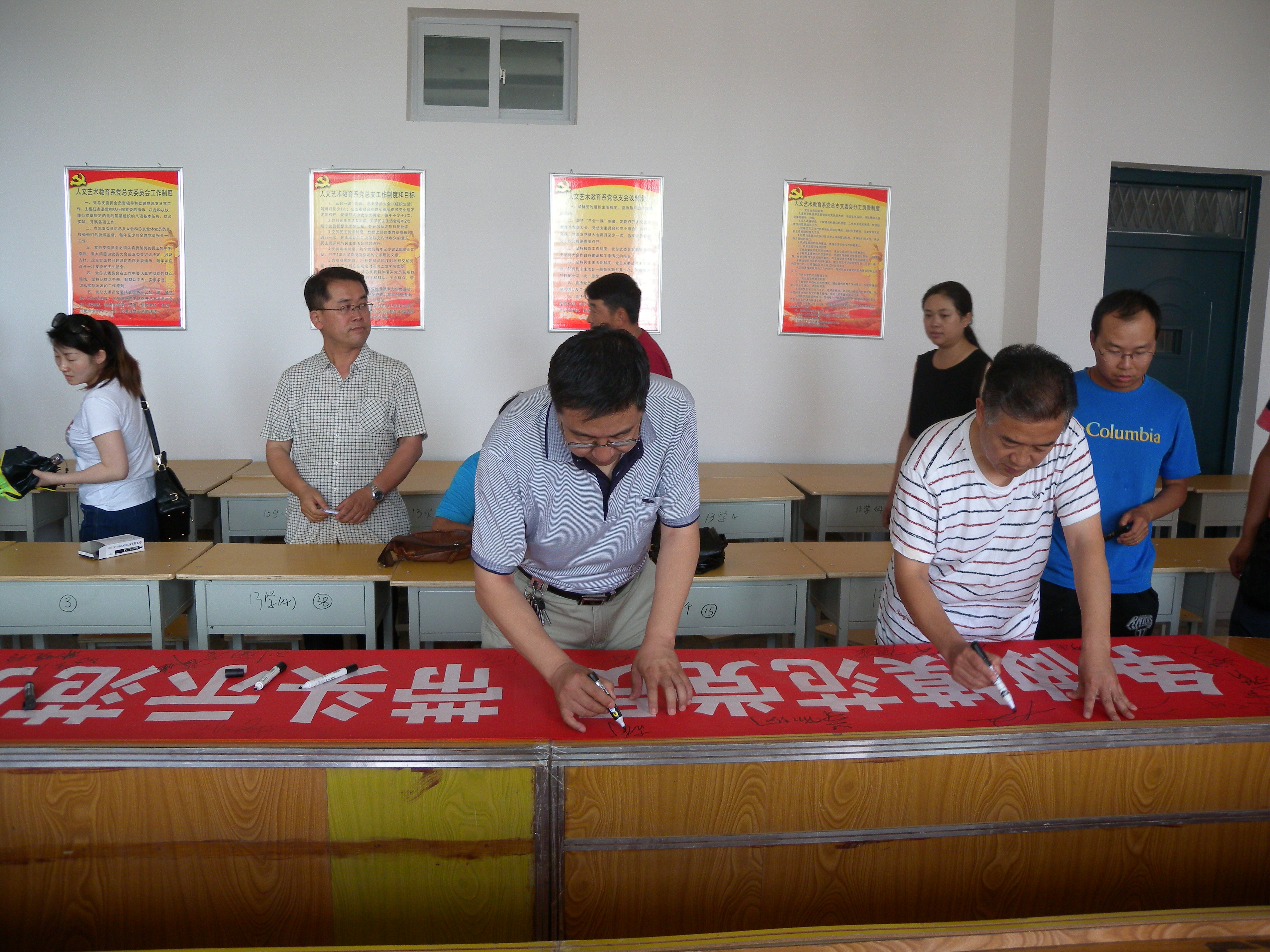 會(huì)后,全體師生黨員在“爭做模范黨員,帶頭示范引領(lǐng)”的橫幅上進(jìn)行了簽名活動(dòng)。本次簽名活動(dòng),旨在發(fā)揮“一個(gè)黨員就是一面旗幟”的帶頭示范引領(lǐng)作用,激勵(lì)廣大黨員做“兩學(xué)一做”的忠實(shí)踐行者,使“兩學(xué)一做”學(xué)習(xí)教育取得實(shí)實(shí)在在的成效。