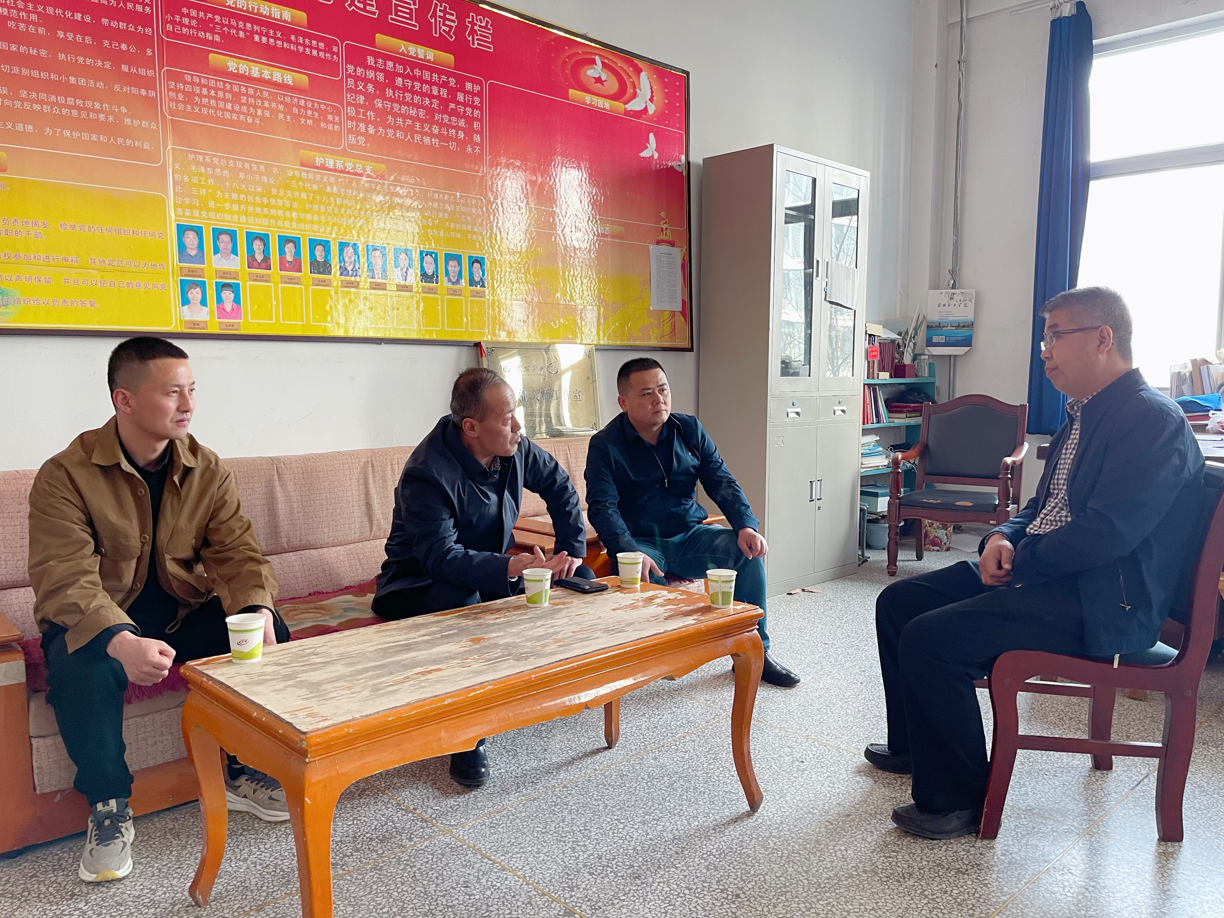 3月17日上午,護理學(xué)院黨總支書記張建輝與天祝康德養(yǎng)老有限責(zé)任公司院長楊廣智一行會面。