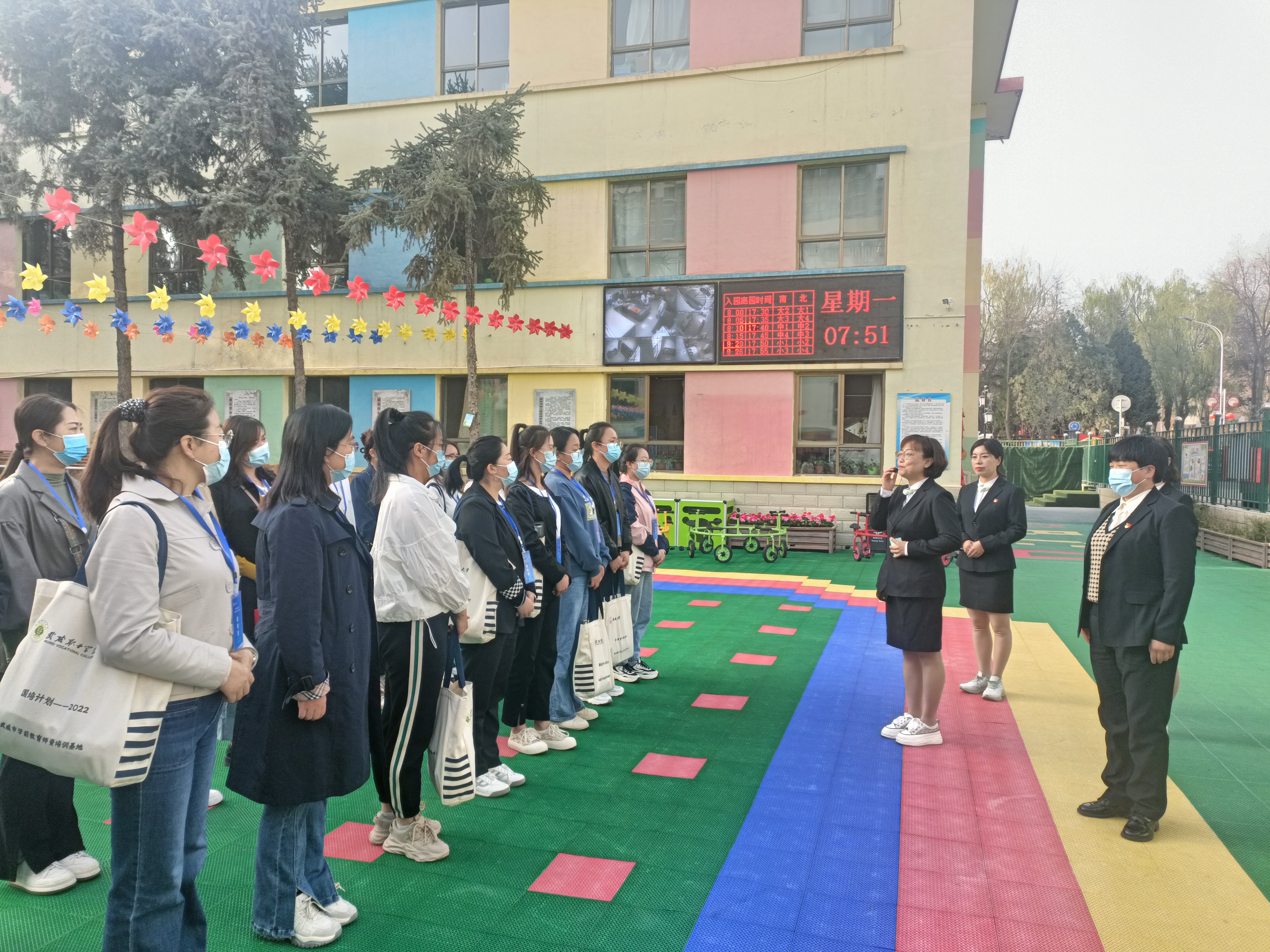 4月17日,“國培計(jì)劃(2022)”武威市市級農(nóng)村幼兒園骨干教師培訓(xùn)班第二階段幼兒園跟崗研修開始。根據(jù)國培項(xiàng)目要求,培訓(xùn)實(shí)施第二階段要求所有學(xué)員進(jìn)幼兒園跟崗研修5天。經(jīng)過前期調(diào)研和市教育局要求,確定市屬2所、區(qū)屬3所幼兒園作為本次培訓(xùn)跟崗研修園所。
