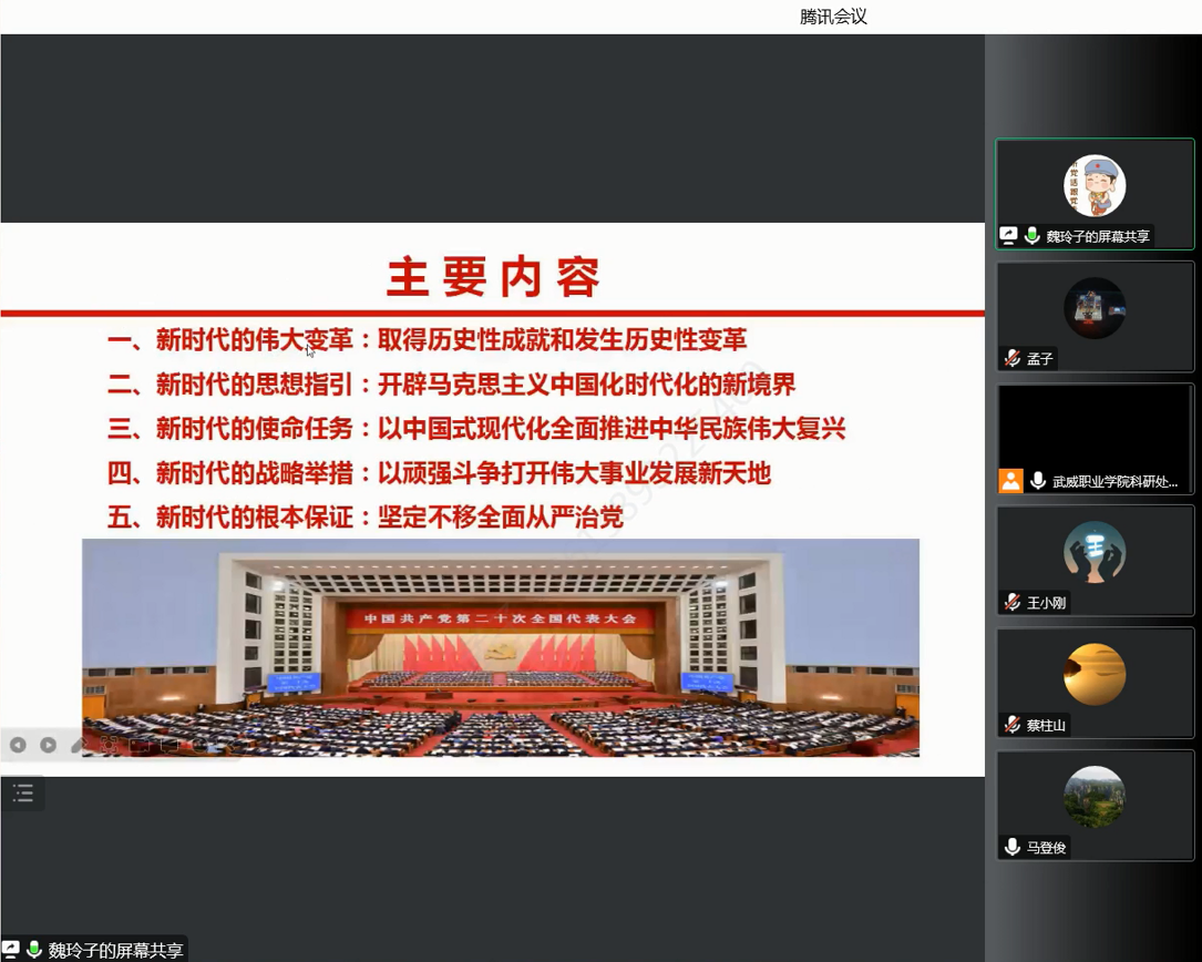 12月23日,按照學(xué)校黨委工作部署,教學(xué)管理第二黨支部組織開(kāi)展黨的二十大精神宣講宣傳活動(dòng),會(huì)議由黨支部書(shū)記董鵬主持,邀請(qǐng)了學(xué)校黨的二十大精神宣講團(tuán)成員魏玲,支部全體黨員和入黨積極分子通過(guò)網(wǎng)絡(luò)視頻參加學(xué)習(xí),會(huì)議精神宣傳至支部全體人員。