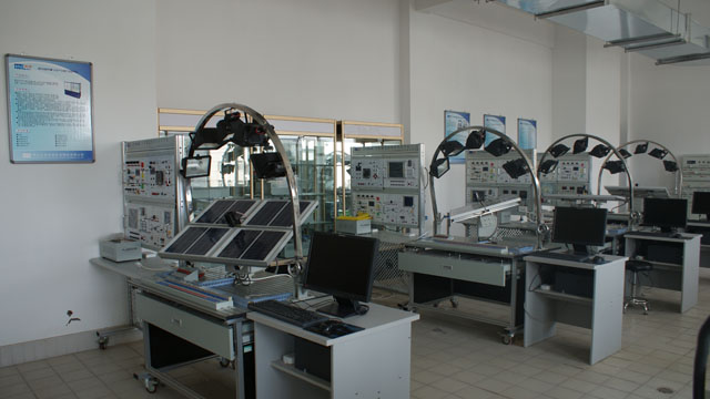 光伏光熱實(shí)訓(xùn)室建立于2013年4月初,主要面向光伏發(fā)電及應(yīng)用技術(shù)、太陽能光熱技術(shù)專業(yè),是能源工程系的專業(yè)實(shí)訓(xùn)室之一。室內(nèi)配有光伏產(chǎn)業(yè)鏈陳列柜、太陽能輻射觀測(cè)系統(tǒng)、太陽能氣象觀測(cè)系統(tǒng)各1套,太陽能熱水器實(shí)訓(xùn)裝置2套,太陽能光伏發(fā)電系統(tǒng)應(yīng)用平臺(tái)4套,太陽能光伏發(fā)電系統(tǒng)實(shí)訓(xùn)裝置8套。該實(shí)訓(xùn)室主要服務(wù)于我系《光伏發(fā)電技術(shù)分析與應(yīng)用》、《太陽能資源利用與開發(fā)》、《光伏發(fā)電系統(tǒng)集成與施工》等專業(yè)核心課程。