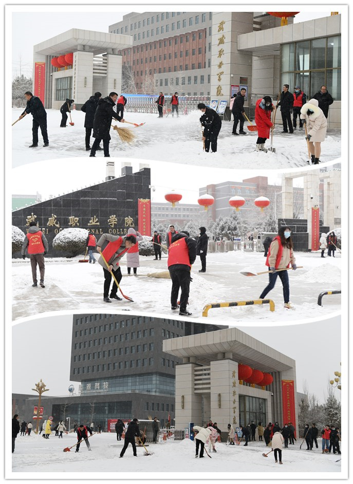 路面積雪既給過往師生和行人帶來行走不便,也存在安全隱患。學(xué)校教職工手拿鏟雪鍬、掃帚、鐵鍬等工具,爭先恐后、相互配合,認(rèn)真清掃道路積雪,鏟除路面積冰。經(jīng)過大家共同努力,原本積雪結(jié)冰的路面恢復(fù)了正常,不僅干凈了,也消除了安全隱患。