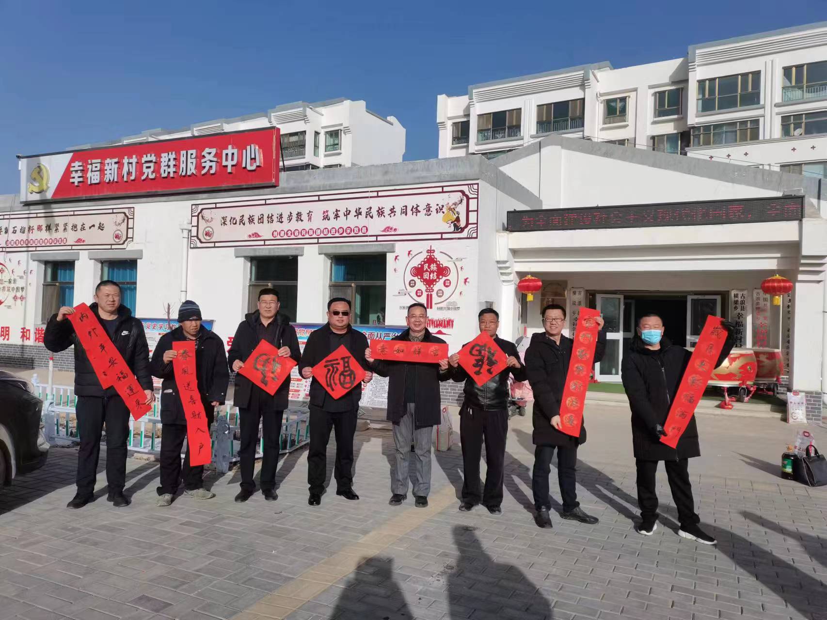 會后,志愿者為村民送上了春聯(lián)、福字?!昂眠\常來添富貴,吉星高照永平安”“春歸大地人間暖,福降神州喜臨門”……一副副春聯(lián)承載著大家對新年的美好祝福,對未來幸福生活的期許和向往。村民群眾結(jié)伴而來,仔細挑選每一副春聯(lián)。大家拿到散發(fā)淡淡墨香、帶著濃濃祝福的大紅春聯(lián)和福字,臉上洋溢著幸福的笑容。此次活動共送出1400副春聯(lián),3000個福字,將新年祝福送到千家萬戶,不僅弘揚優(yōu)秀傳統(tǒng)文化,也營造了濃濃的新春氣氛,增進村民間的情感。
