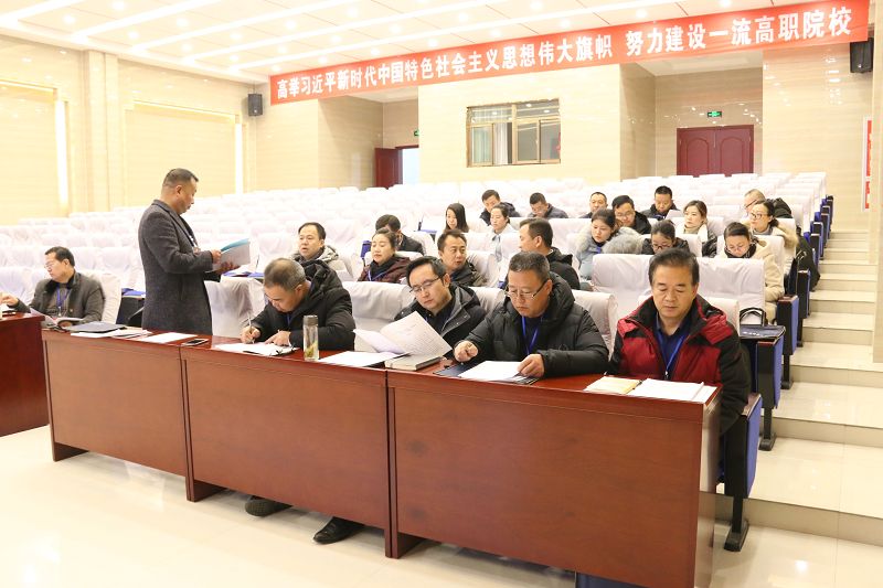 大會在莊嚴(yán)的國歌聲中拉開序幕,黨委書記、院長趙明作了《聚焦國家職業(yè)教育改革方案,全力以赴推動學(xué)院高質(zhì)量發(fā)展》的年度工作報(bào)告,全面客觀、實(shí)事求是地回顧了2019年工作,分析了存在的困難和問題,安排了2020年主要工作,思路清晰,措施有力,催人奮進(jìn)。他指出,要始終堅(jiān)持以習(xí)近平新時代中國特色社會主義思想為指導(dǎo),貫徹落實(shí)黨的十九大和十九屆二中、三中、四中全會精神和習(xí)近平總書記視察甘肅重要講話和指示精神,堅(jiān)持黨的教育方針,堅(jiān)持立德樹人,牢固樹立“四個意識”,堅(jiān)定“四個自信”,堅(jiān)決做到“兩個維護(hù)”,以教學(xué)診斷與改進(jìn)工作為抓手,加快智能校園建設(shè),不斷深化產(chǎn)教融合、校企合作,提升辦學(xué)效益、水平和治理能力、治理體系建設(shè),統(tǒng)籌謀劃“十四五”發(fā)展規(guī)劃,不斷開創(chuàng)改革發(fā)展新局面。