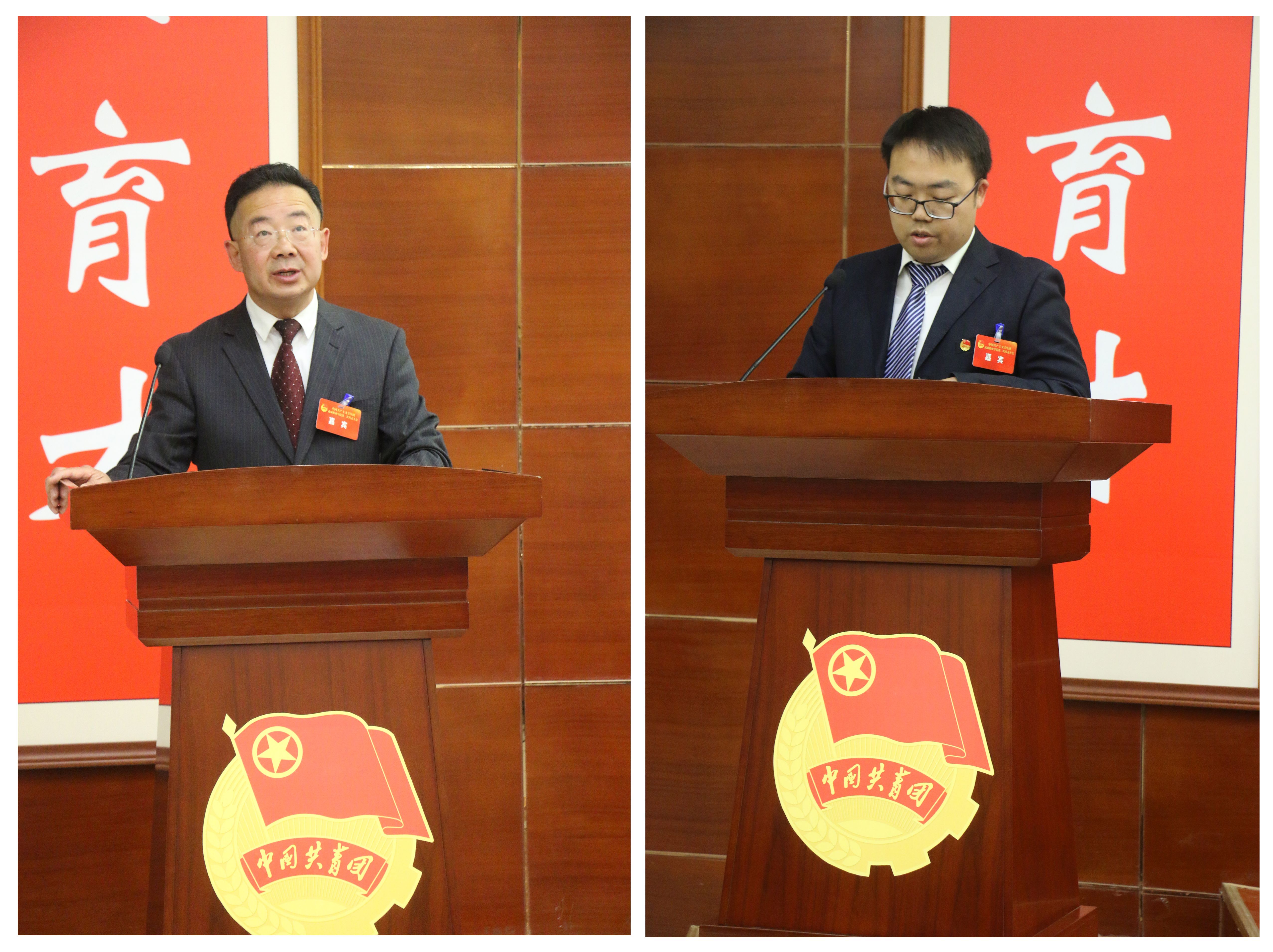 甘肅畜牧工程職業(yè)技術(shù)學(xué)院團(tuán)委副書記張亮代表兄弟院校向大會致賀詞,學(xué)校工會主席金玉龍代表學(xué)校群團(tuán)組織向大會召開致辭。