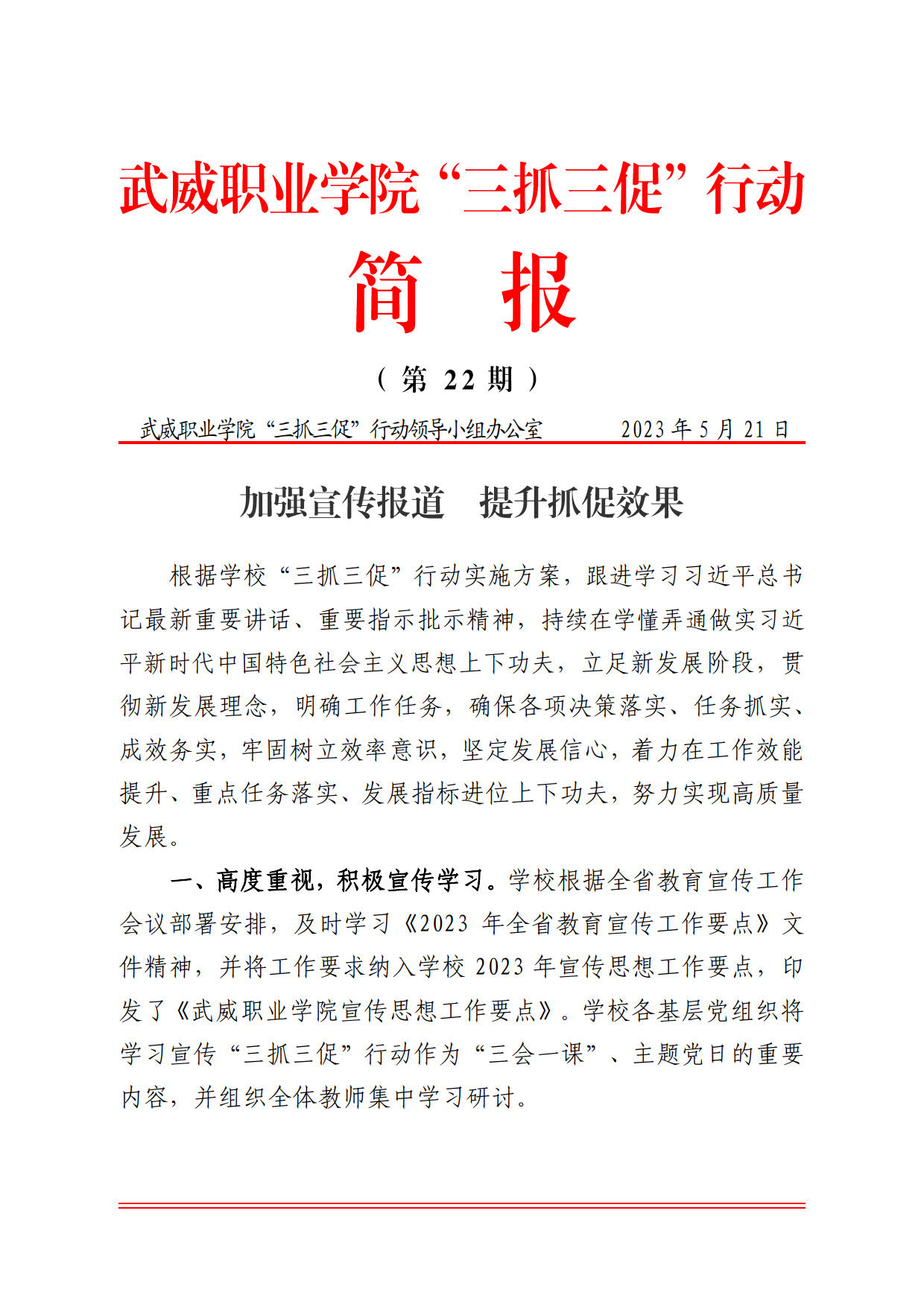 簡報(bào)第22期:加強(qiáng)宣傳報(bào)道 提升抓促效果