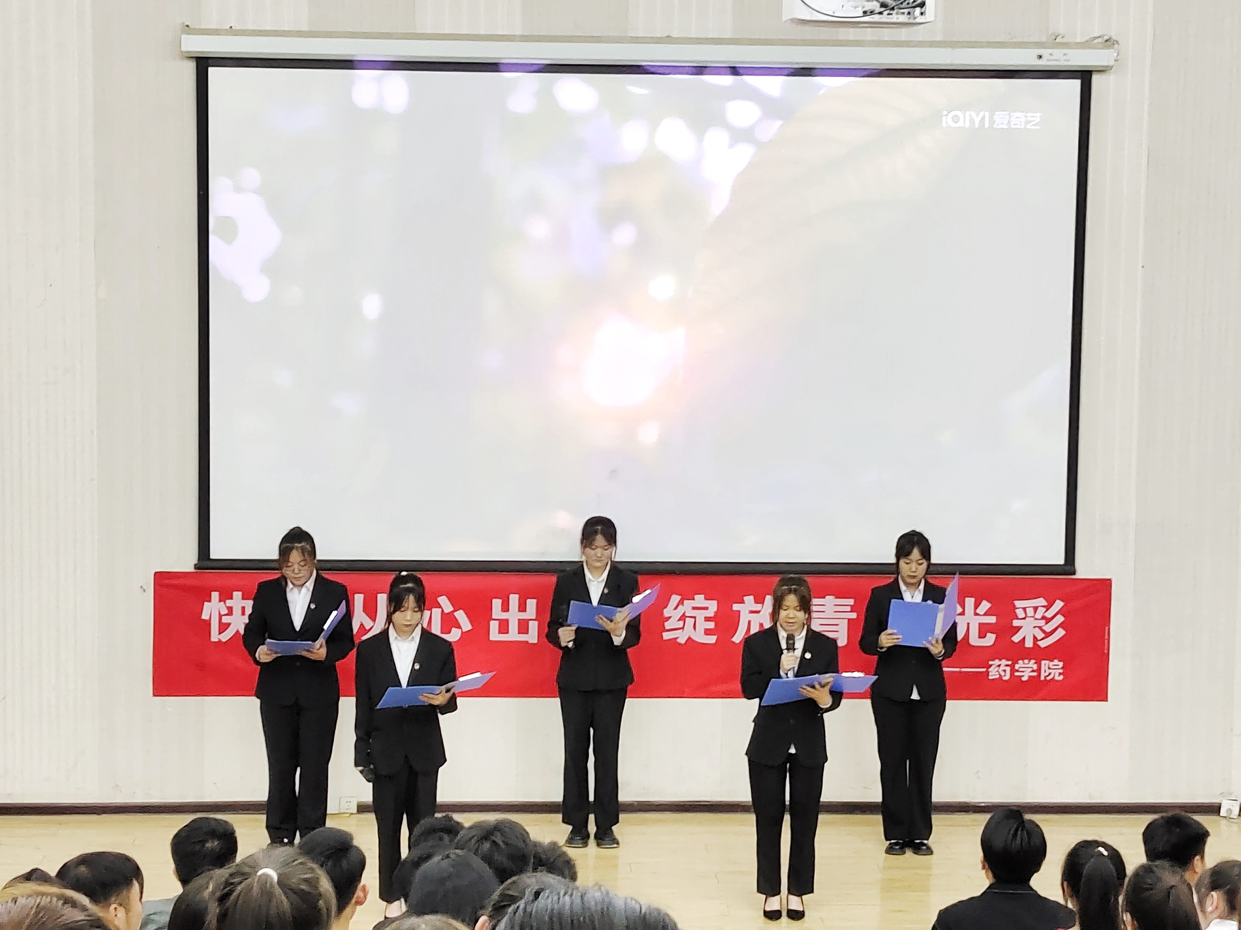 ? ? ? ?每年的5月25日是全國(guó)心理健康日,為引導(dǎo)大學(xué)生關(guān)注自身的心理健康,5月30日晚上19:30,藥學(xué)院在正德廳舉行“快樂從心出發(fā),綻放青春光彩”主題演講比賽,全院15個(gè)參賽隊(duì)參加,學(xué)生管理負(fù)責(zé)人魏曙光、團(tuán)委書記楊琨、輔導(dǎo)員魯倩林、李小鵬及部分班主任觀看比賽。
