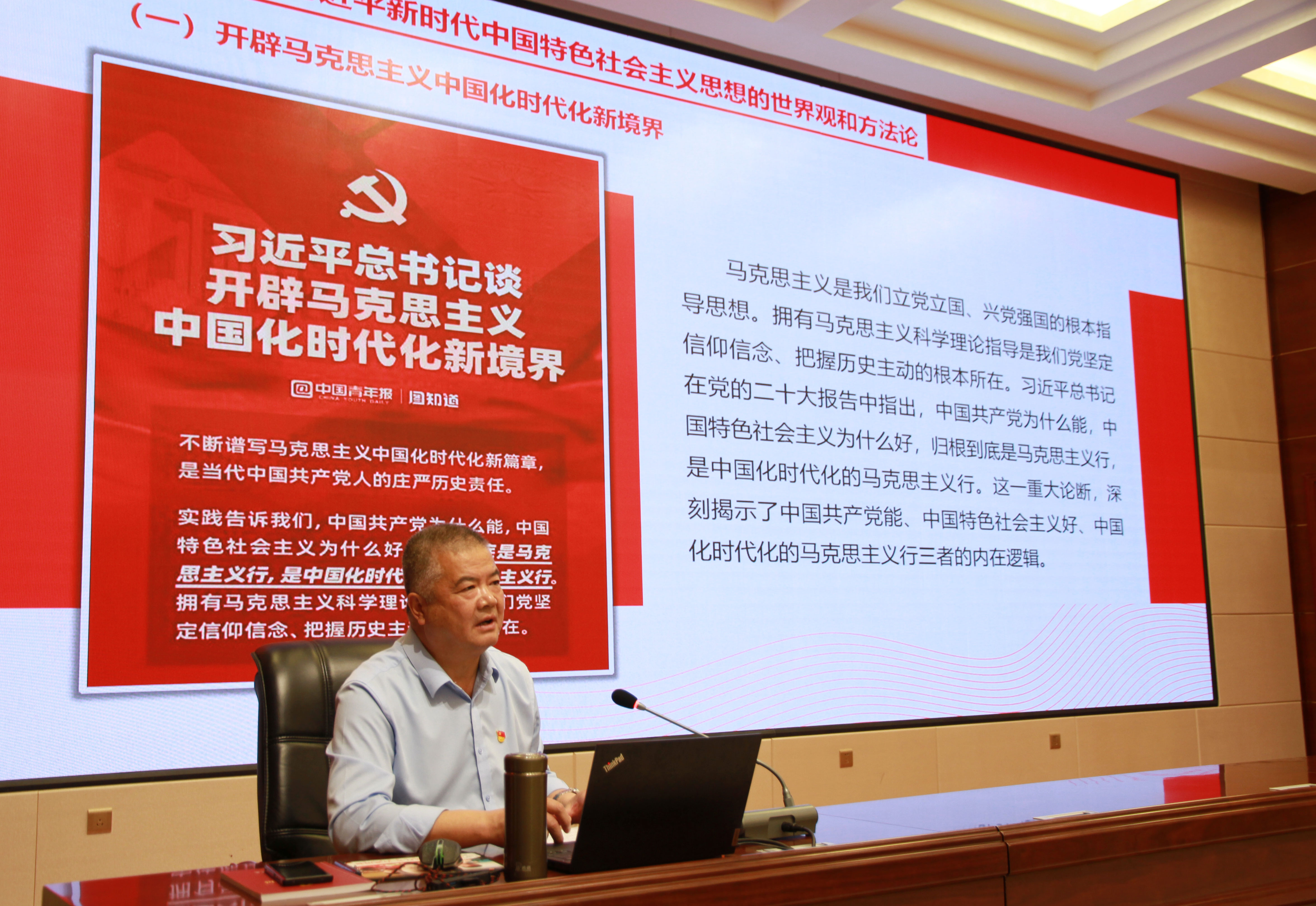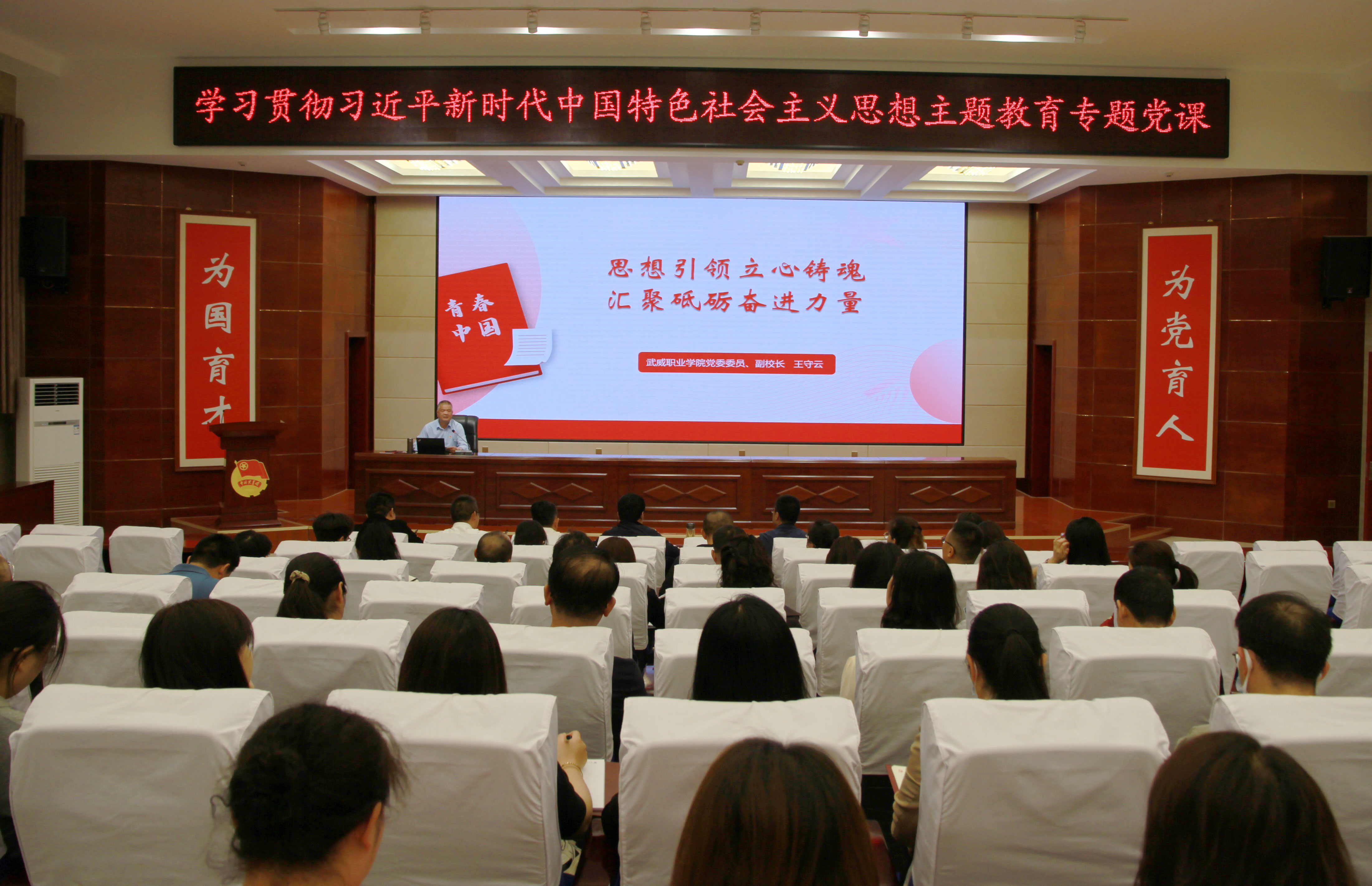 5月30日下午,校黨委委員、副校長(zhǎng)王守云以《思想引領(lǐng)立心鑄魂 匯聚砥礪奮進(jìn)力量》為題,結(jié)合個(gè)人學(xué)思踐悟和學(xué)校分管工作,為藝術(shù)與教育學(xué)院和經(jīng)濟(jì)管理學(xué)院全體黨員干部上了一堂精彩生動(dòng)的學(xué)習(xí)貫徹習(xí)近平新時(shí)代中國(guó)特色社會(huì)主義思想主題教育黨課。