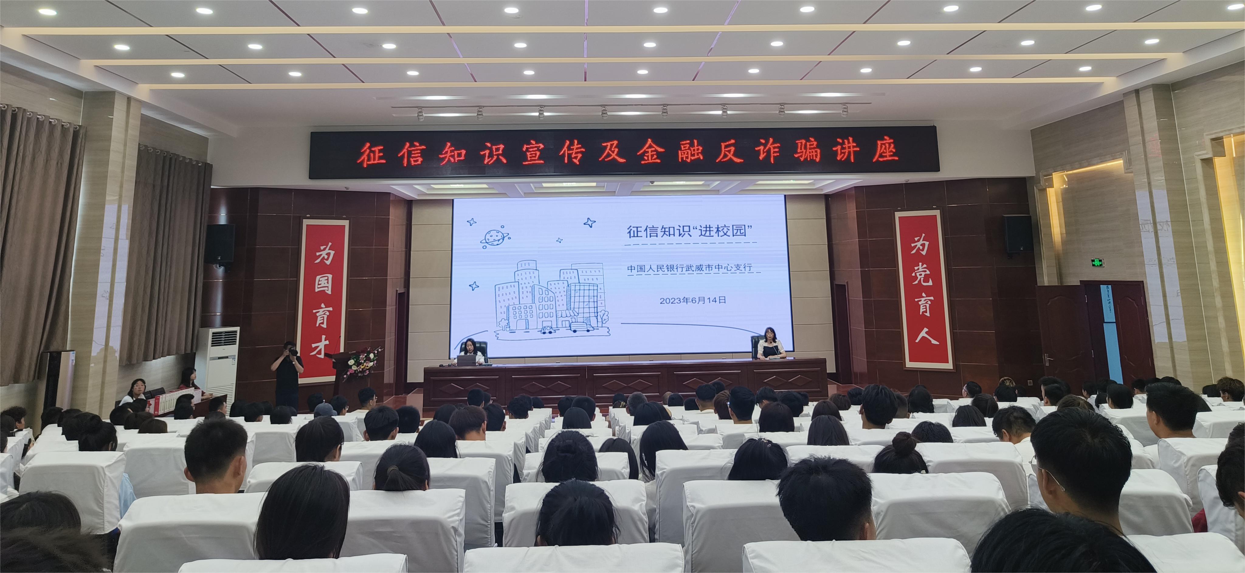 為普及金融、征信知識,提高學生的誠信意識和風險意識,6月14日下午,在第16個全國“信用記錄關愛日”來臨之際,由我校和中國人民銀行武威市中心支行及10家商業(yè)銀行聯(lián)合主辦的“普及征信知識,提高誠信意識”為主題的征信知識進校園宣傳活動在學校大學生活動中心前廣場和菁英廳舉行,學校500余名師生代表參加了本次活動。