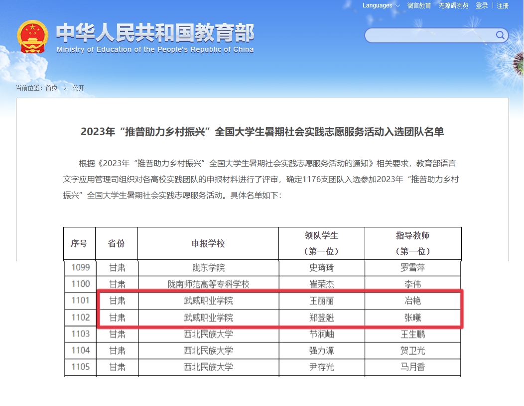我校2支團(tuán)隊入選2023年“推普助力鄉(xiāng)村振興”全國大學(xué)生暑期社會實(shí)踐志愿服務(wù)活動