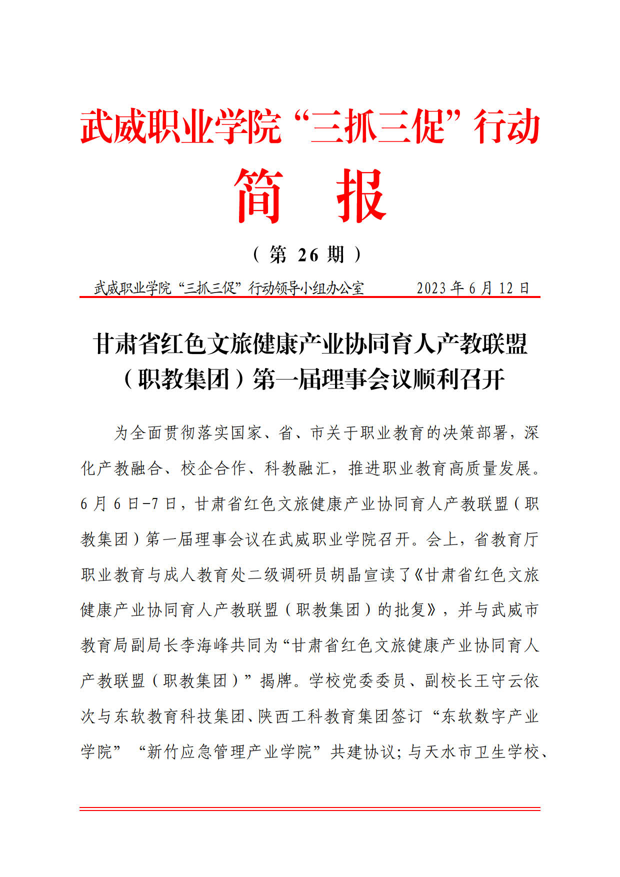 簡報第26期:甘肅省紅色文旅健康產業(yè)協(xié)同育人產教聯(lián)盟(職教集團)第一屆理事會議順利召開