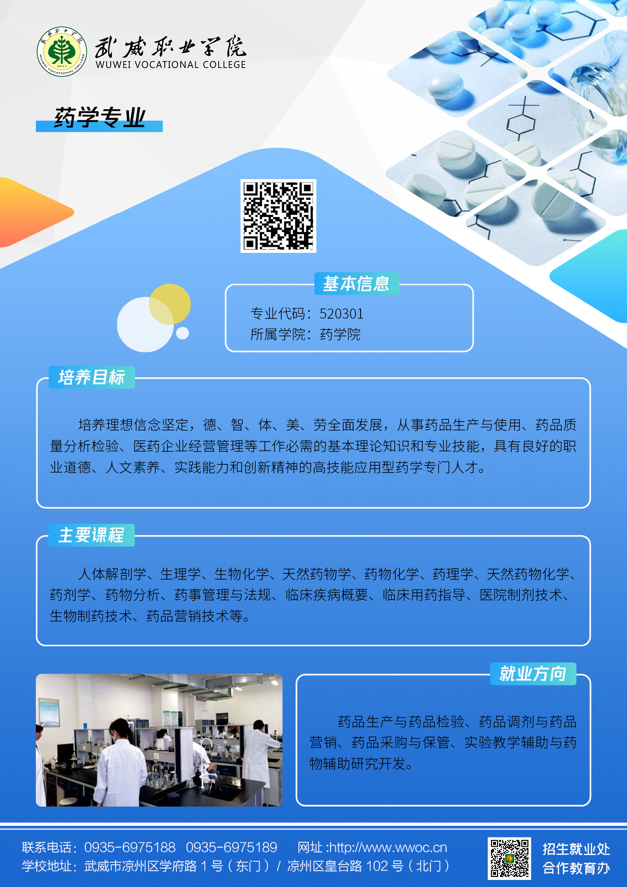 武威職業(yè)學(xué)院二級學(xué)院專業(yè)簡介丨藥學(xué)院