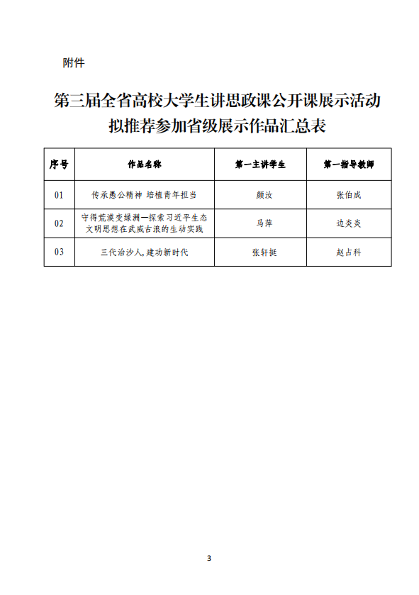關(guān)于武威職業(yè)學院第三屆全省高校大學生講思政課公開課展示活動評選結(jié)果的公示