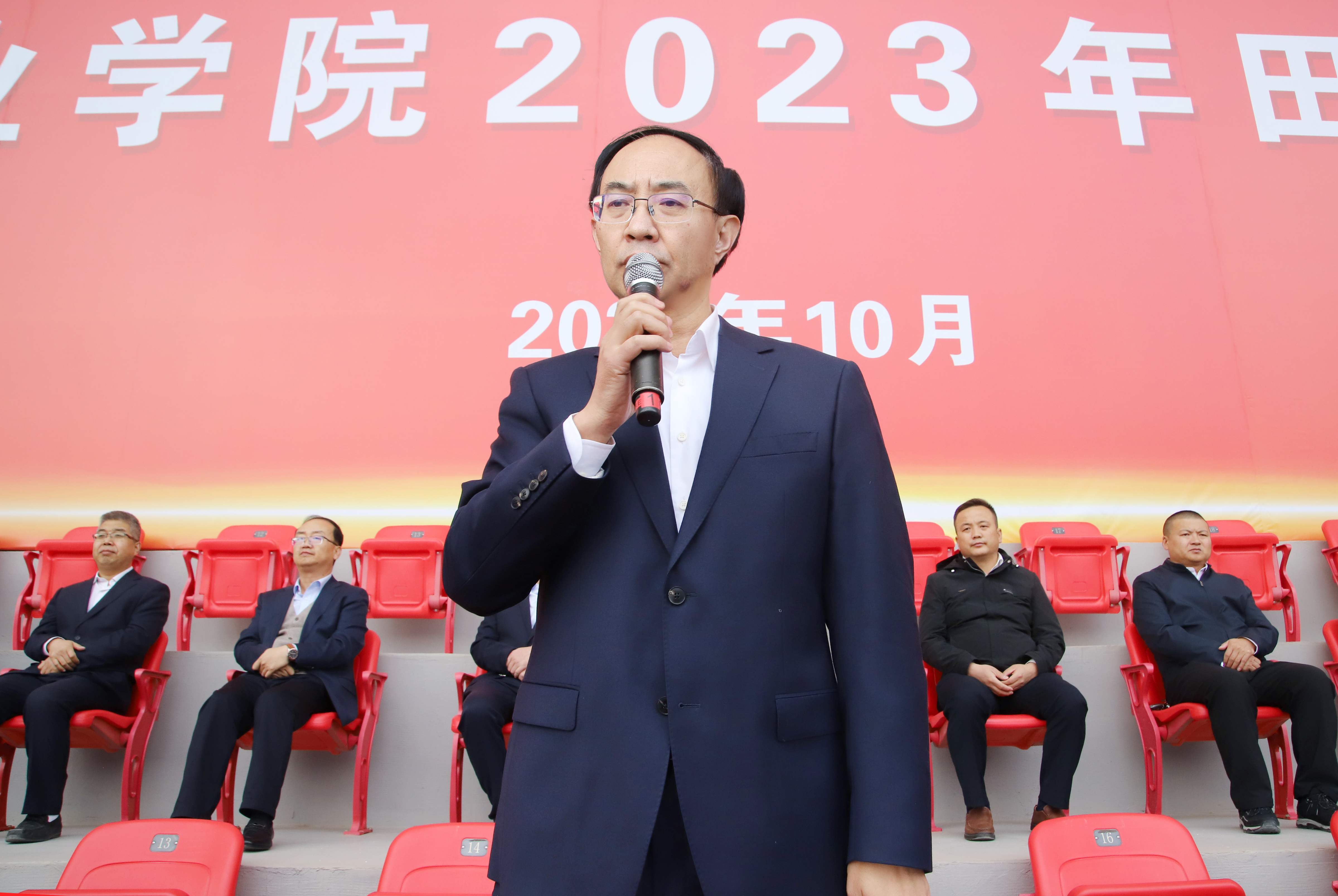王宏宣布武威職業(yè)學(xué)院2023年田徑運動會開幕。