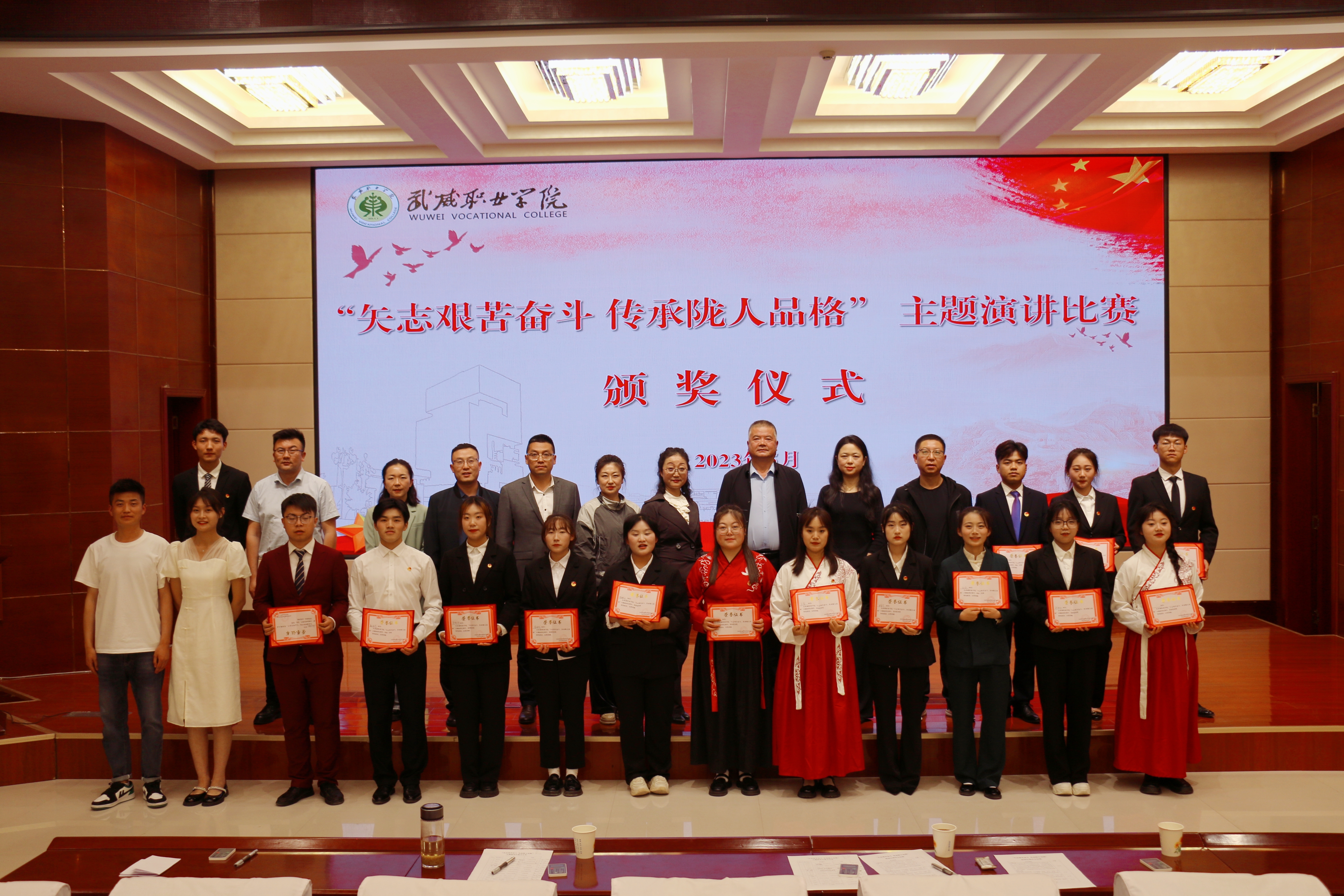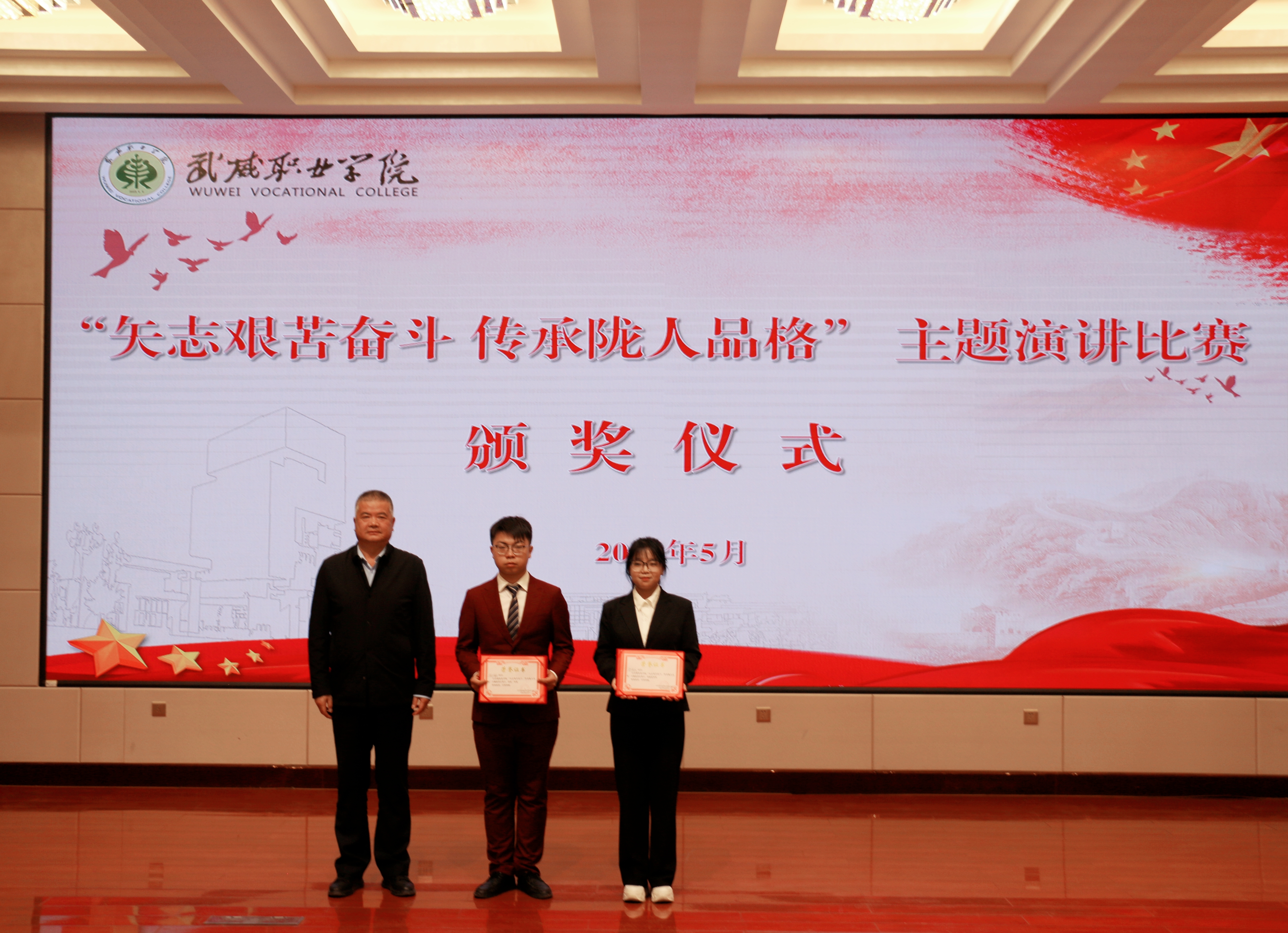 為深入學(xué)習(xí)宣傳貫徹黨的二十大精神,深刻把握習(xí)近平總書記在慶祝中國共產(chǎn)主義青年團(tuán)成立 100 周年大會上對廣大團(tuán)員青年提出的“五個模范”的殷切期望,激勵和引領(lǐng)新時代大學(xué)生弘揚(yáng)甘肅精神和彰顯隴人品格。5月29日,學(xué)校團(tuán)委在菁英廳舉辦“矢志艱苦奮斗 傳承隴人品格”主題演講比賽,學(xué)校黨委委員、副校長王守云出席活動并為獲獎選手頒獎,相關(guān)部門負(fù)責(zé)人和各二級學(xué)院團(tuán)委書記及學(xué)生代表200余人現(xiàn)場觀看比賽。