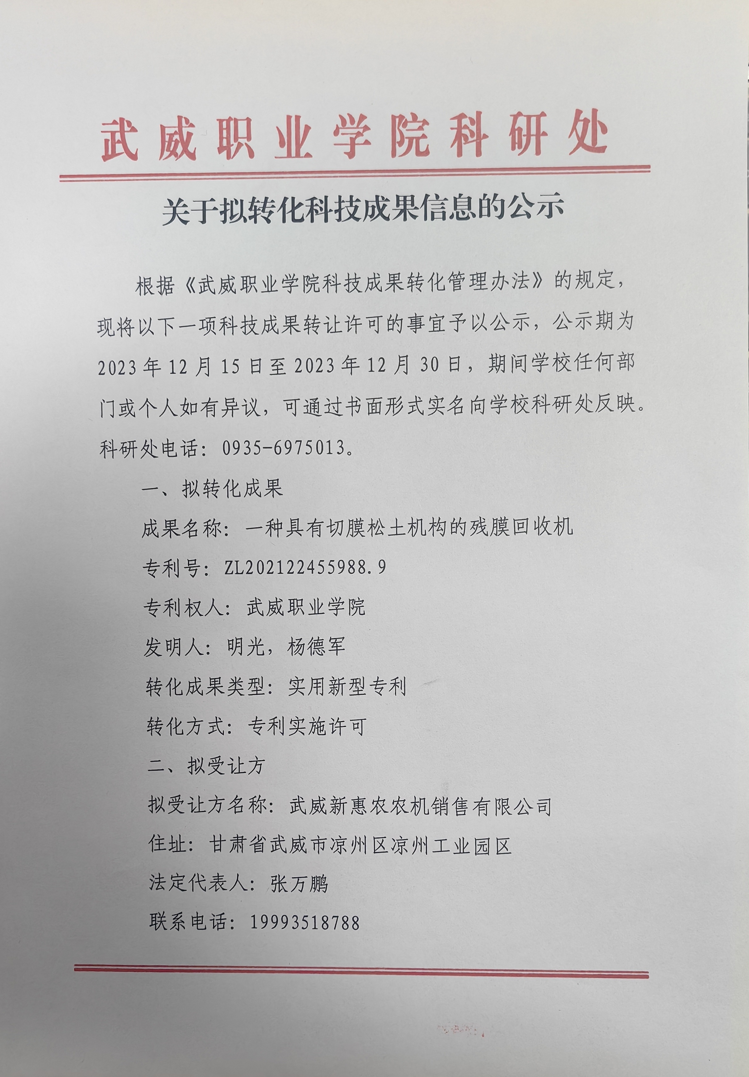 關于擬轉(zhuǎn)化科技成果信息的公示