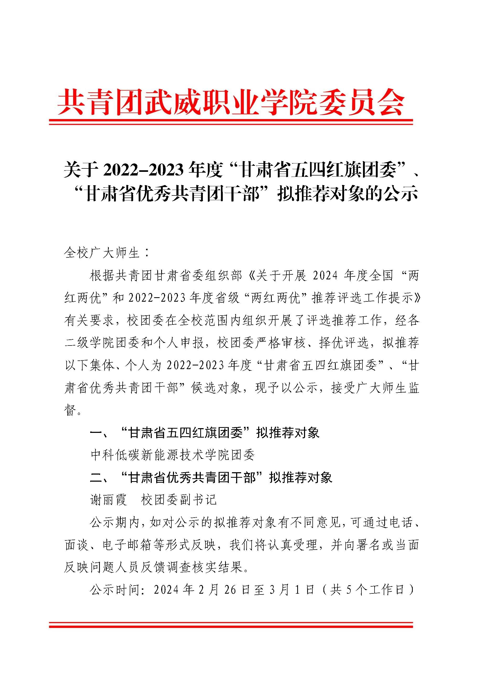 關(guān)于2022-2023年度“甘肅省五四紅旗團(tuán)委”、“甘肅省優(yōu)秀共青團(tuán)干部”擬推薦對象的公示