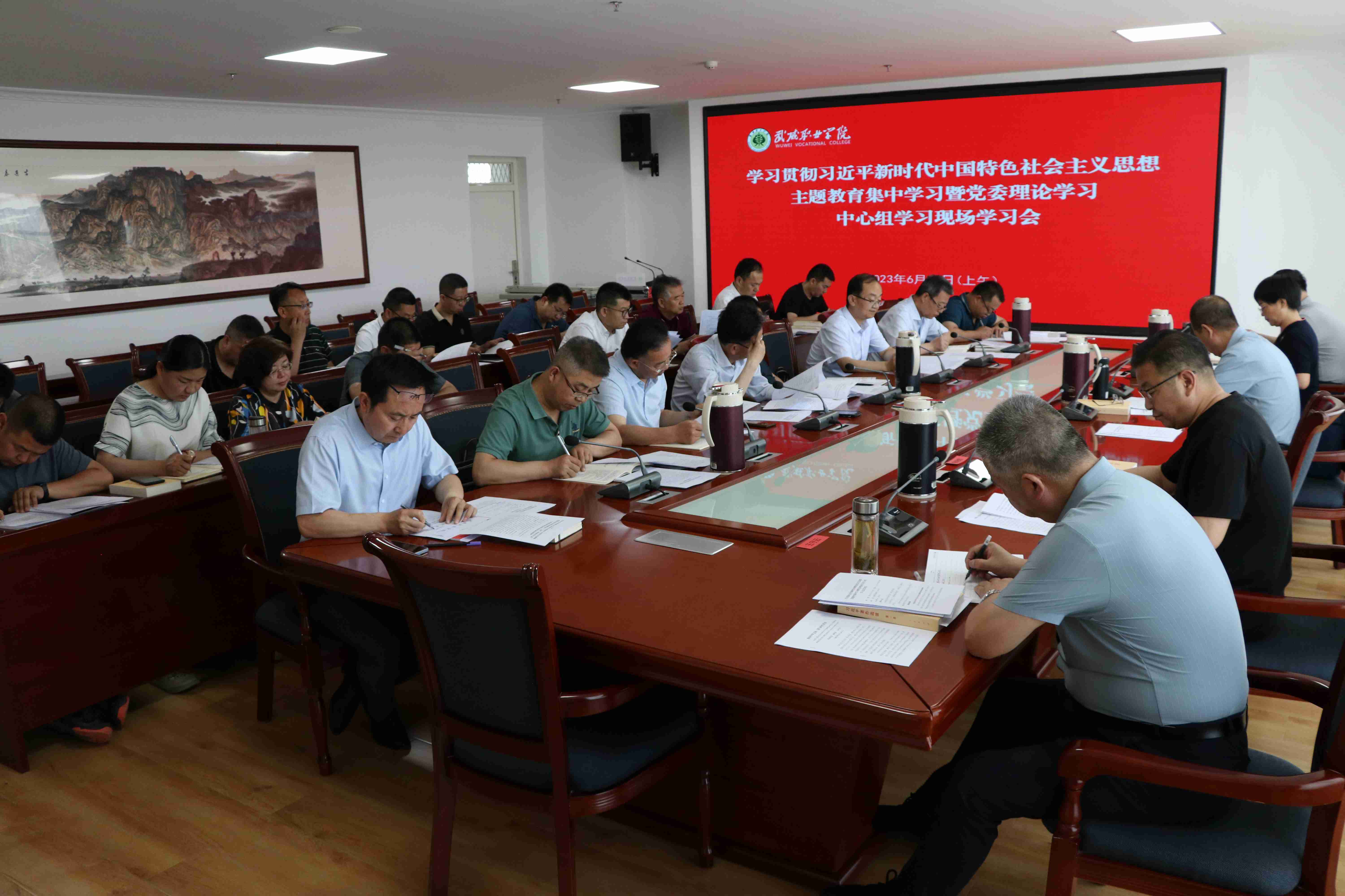 學校黨委班子成員,副縣級干部及各部門、二級學院負責人,各黨總支、直屬黨支部書記,主題教育領導小組辦公室成員參加了會議。
