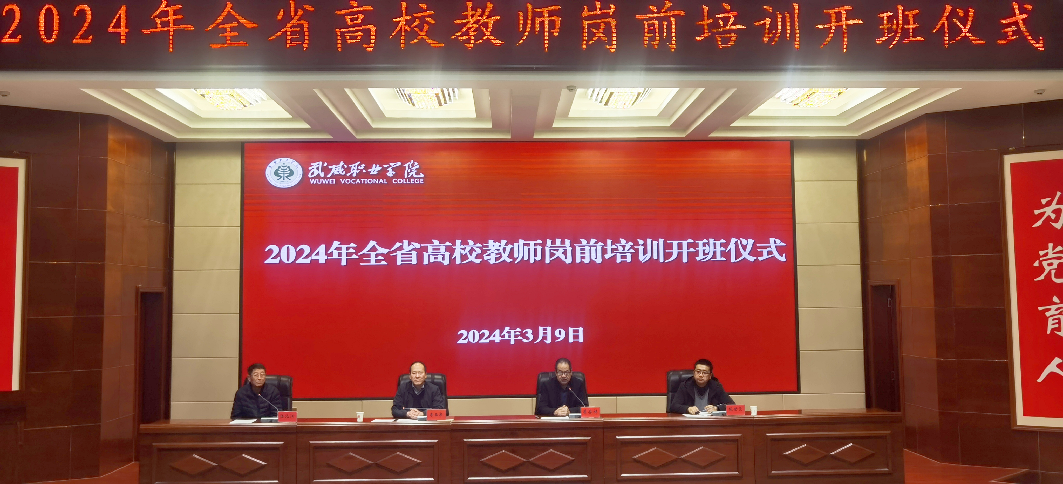 為引導(dǎo)廣大教師深刻領(lǐng)會教育家精神,牢記“為黨育人、為國育才”初心使命,樹立躬耕教壇信念,培養(yǎng)高素質(zhì)教師隊伍,3月9日上午,我校2024年上半年兼職教師崗前培訓(xùn)教學(xué)班開班儀式暨第一階段集中培訓(xùn)在學(xué)生發(fā)展中心菁英廳舉行。西北師范大學(xué)繼續(xù)教育學(xué)院副院長李玉泉、武威職業(yè)學(xué)院黨委副書記翟存祥、教務(wù)處負(fù)責(zé)人張世亮出席會議并講話,142名兼職教師參加開班儀式。儀式由甘肅省高等學(xué)校師資培訓(xùn)中心副主任陸北江主持。開班儀式上,張世亮介紹了本次兼職教師崗前培訓(xùn)基本情況,對培訓(xùn)工作作了部署安排。