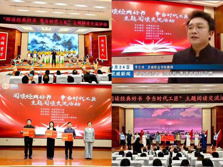 4月23日,由省總工會(huì)主辦、市總工會(huì)承辦,武威職業(yè)學(xué)院協(xié)辦的“閱讀經(jīng)典好書爭當(dāng)時(shí)代工匠”主題讀書交流活動(dòng)在菁英廳隆重舉行。省總工會(huì)三級(jí)調(diào)研員馬艷,市總工會(huì)黨組書記、常務(wù)副主席康金蓮,學(xué)校黨委副書記翟存祥出席活動(dòng)。全市職工書屋、便利型職工閱讀站點(diǎn)、勞模書架建設(shè)單位工會(huì)負(fù)責(zé)人,市、縣區(qū)總工會(huì)干部職工230多人參加活動(dòng)。