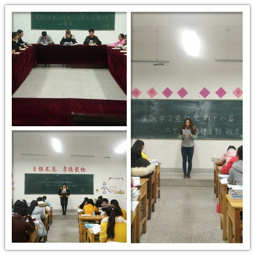 為深入學習宣傳十八屆六中全會精神,引導廣大團員青年準確把握全會的精神實質和深刻內涵,藥學系團總支結合“兩學一做”學習教育和貫徹落實武威市第四次黨代會精神,于12月7日晚,在明遠樓組織各班團支部開展了學習黨的十八屆六中全會精神主題團會。團會由各班團支部書記主持,會議傳達了十八屆六中全會精神和武威市第四次黨代會精神,領學了《中國共產(chǎn)黨第十八屆中央委員會第六次全體會議公報》內容。
