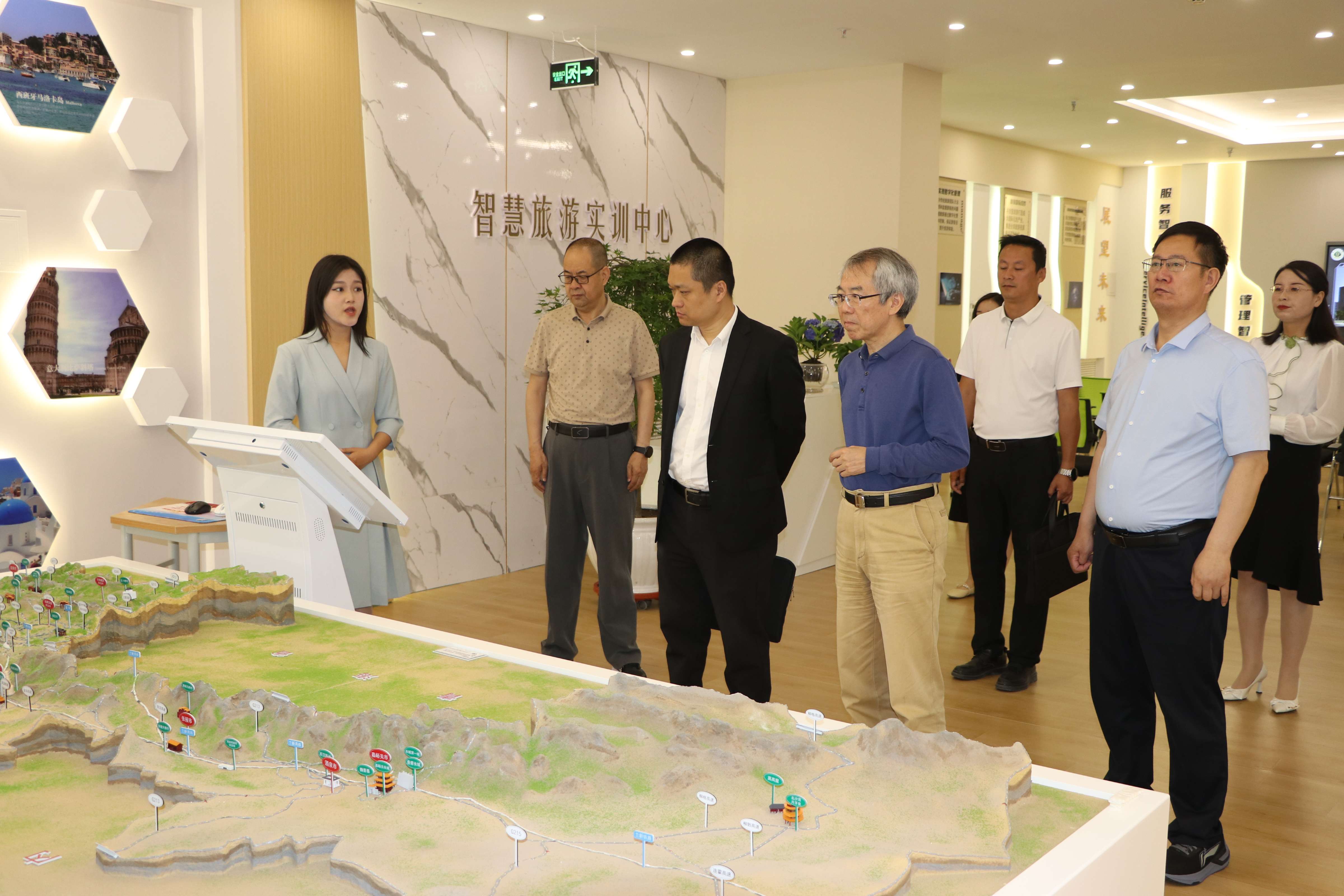 專家組實地查看了智慧旅游實訓(xùn)室、創(chuàng)新創(chuàng)業(yè)中心、非遺體驗中心等校內(nèi)實踐場所和部分校外學(xué)生實踐基地,了解學(xué)生在導(dǎo)游服務(wù)、文創(chuàng)產(chǎn)品設(shè)計、非遺傳承等方面的情況,檢驗學(xué)生培養(yǎng)成果。
