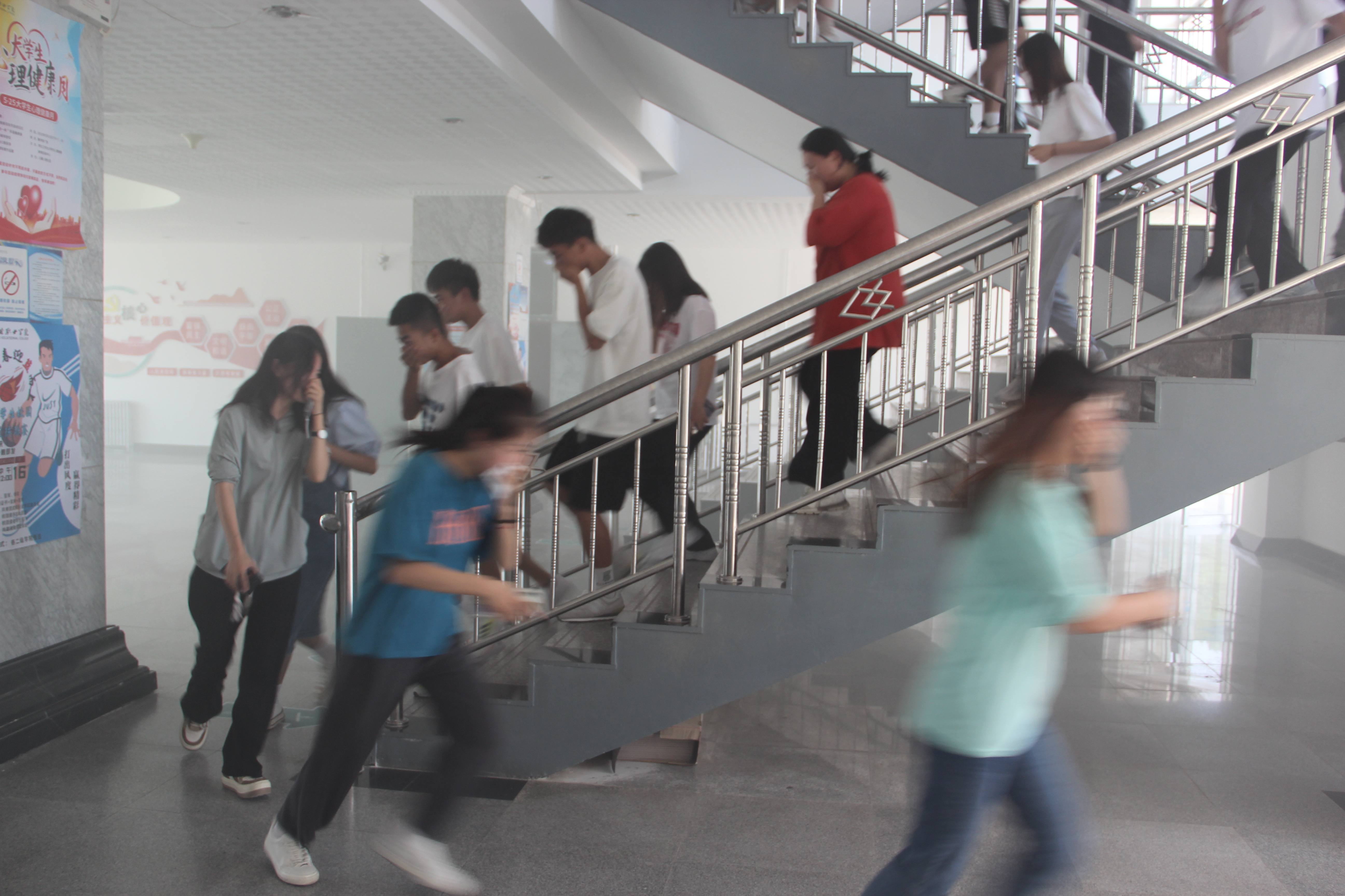 6月24日下午4點(diǎn)46分,學(xué)校應(yīng)急疏散演練正式開始。隨著消防警報響起,上課教師立即停止上課組織學(xué)生疏散,學(xué)生用毛巾捂住口鼻,在學(xué)工人員的指揮下,按照逃生路線迅速有序疏散。在5分鐘內(nèi),8000多名師生全部按指要求撤離到指定區(qū)域集合,演練取得圓滿成功。