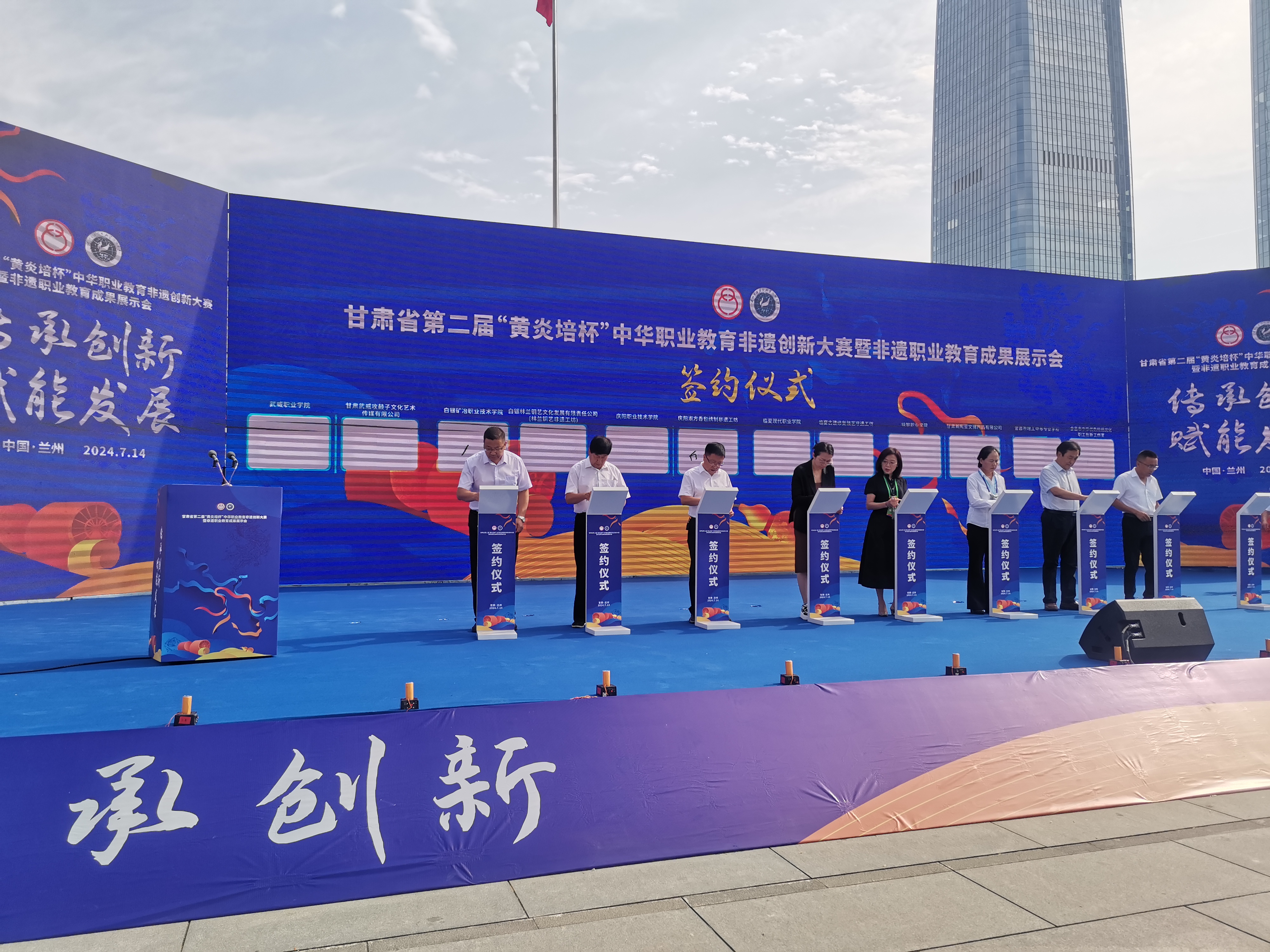 賽會期間還舉行了非遺進(jìn)職校簽約儀式,學(xué)校黨委委員、紀(jì)委書記、監(jiān)察專員陳曉煜代表學(xué)校與甘肅武威攻鼓子文化藝術(shù)傳媒有限公司簽訂了合作協(xié)議。