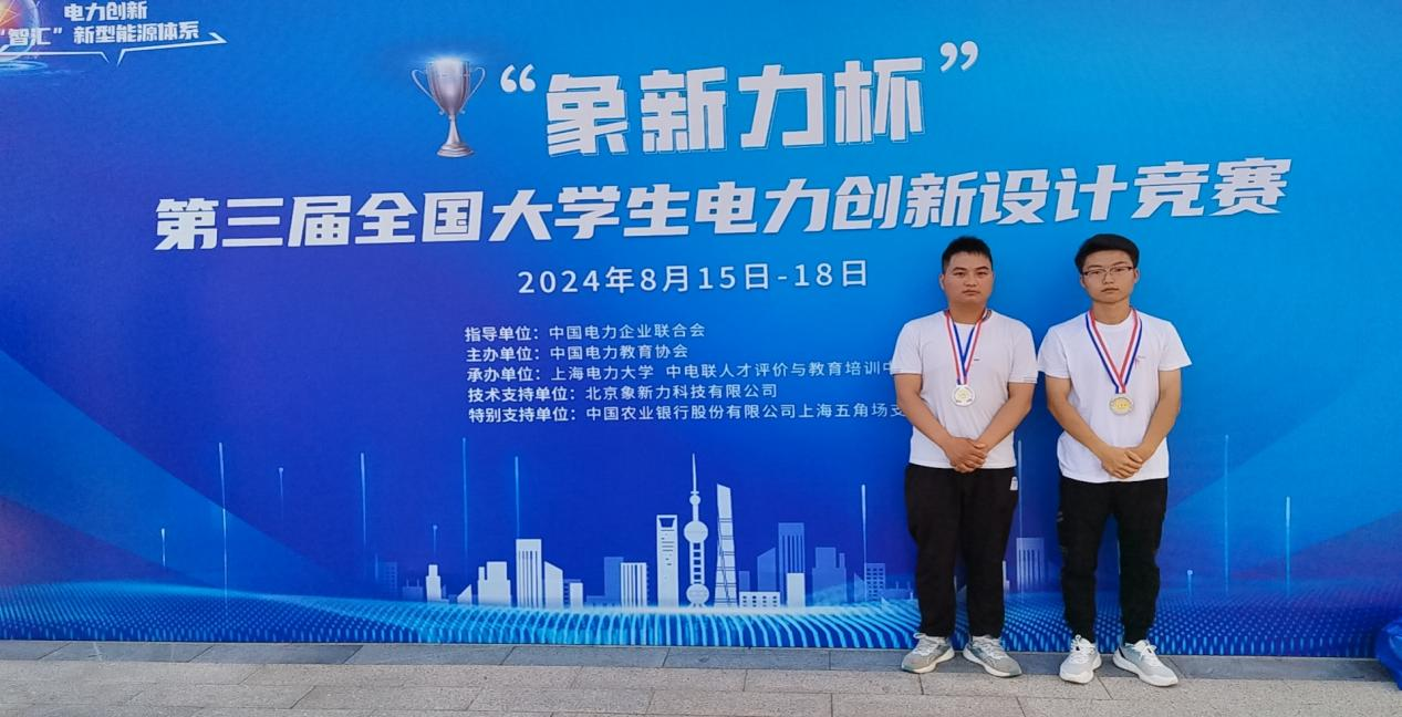 8月15-18日,“象新力杯”第三屆全國大學(xué)生電力創(chuàng)新設(shè)計(jì)競賽總決賽在上海電力大學(xué)(臨港校區(qū))圓滿舉行。來自全國114所高校的289支團(tuán)隊(duì)共計(jì)1500余人共同參與,經(jīng)過線上線下,匯聚智慧、碰撞創(chuàng)意、交流成果、比拼才能,我校工程技術(shù)學(xué)院參賽的2名同學(xué)獲決賽二等獎。
